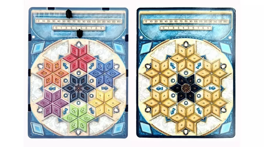 Azul mini - the royal pavilion beautiful family board game. Players choose nice pots and build their own pavilions from them, as well as the most valuable of theirs.