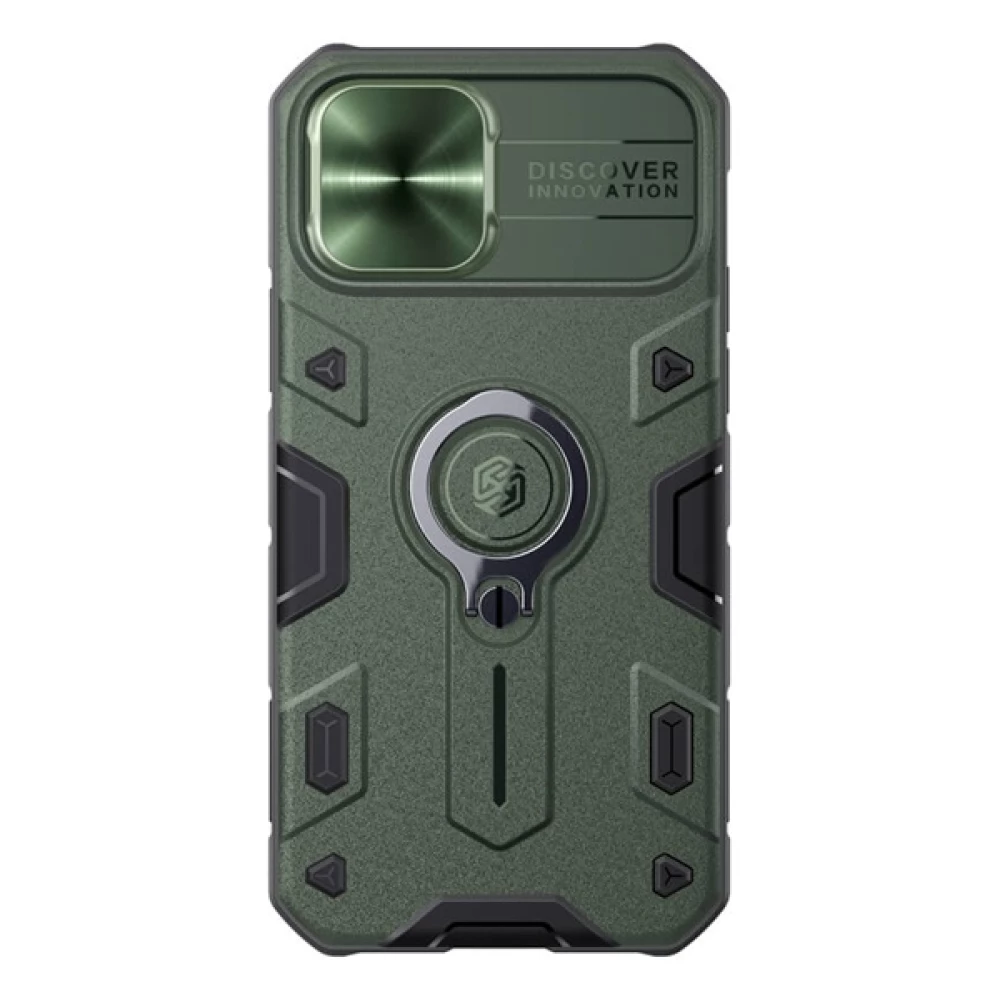 NILLKIN iPhone 12 Pro NILLKIN CAMSHIELD ARMOR defender silicone telefonvédő ütésállóság, tartógyűrű, SÖTÉTZÖLD