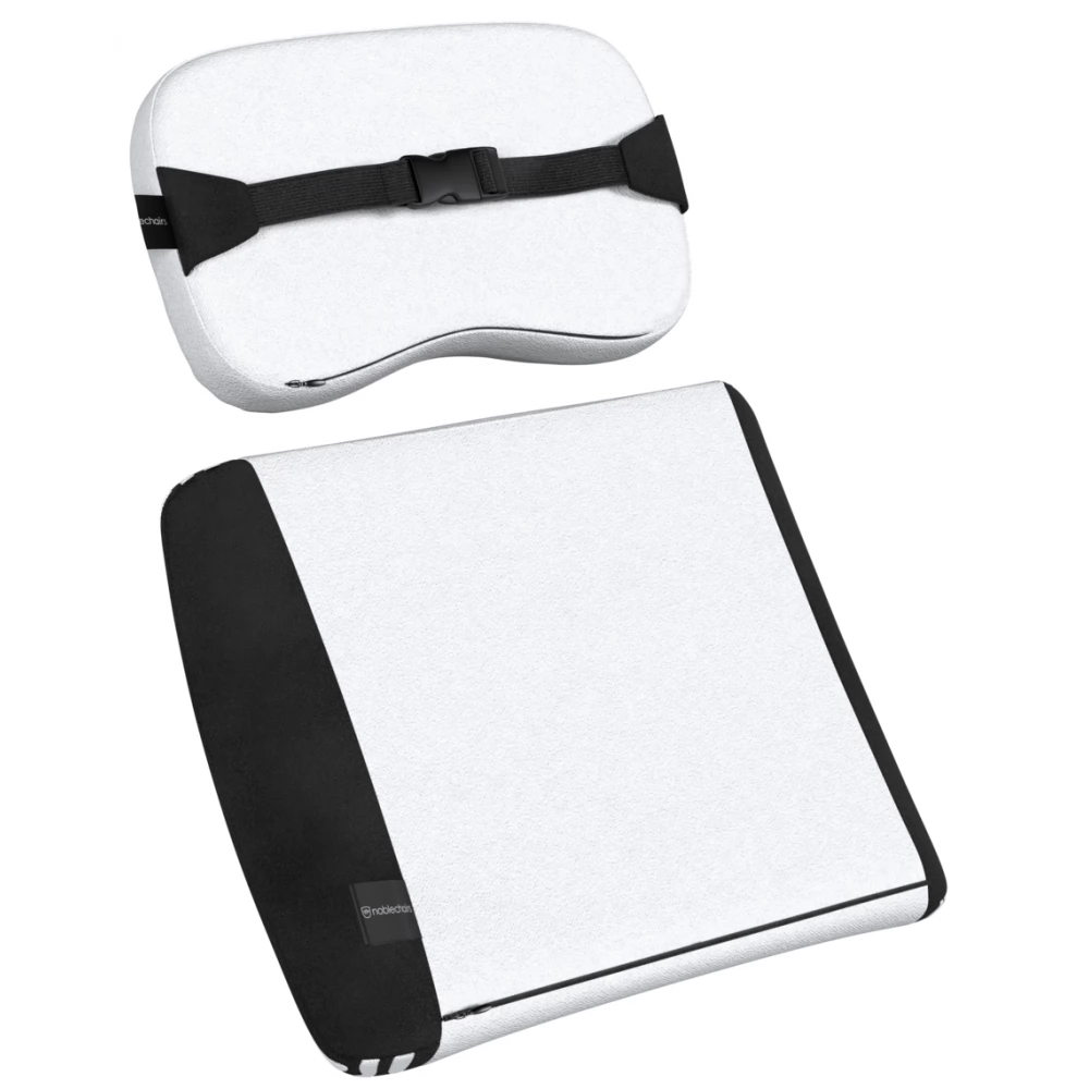 Thanks to better neck and lumbar support, these pillows help and encourage a more natural posture while making sitting even more comfortable. Thanks to its exceptional flexibility and adjustability, the pillows can be placed in exactly the right place for maximum comfort. The fine elastic band helps keep the neck pillow in the desired position.