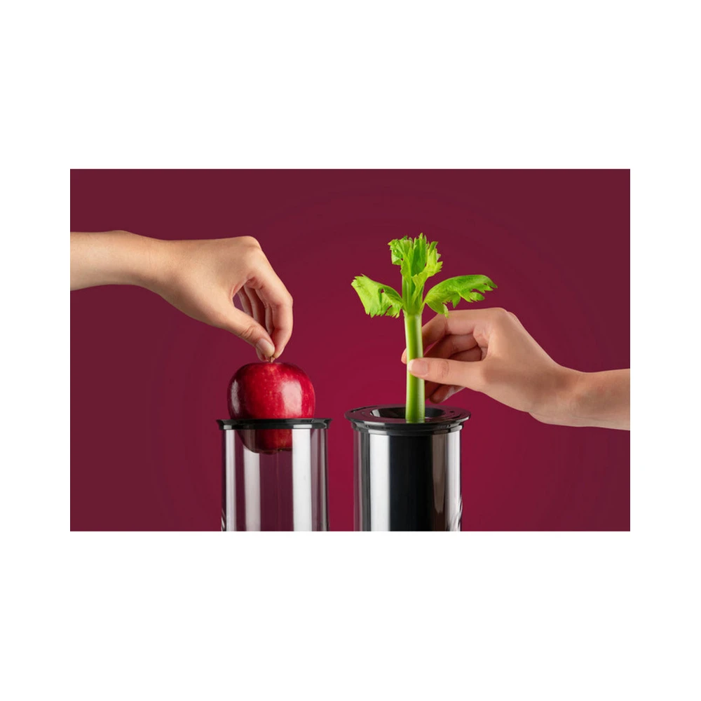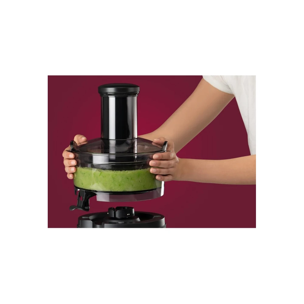 The NutriBullet Juicer Pro is a powerful centrifugal juicer that efficiently squeezes fresh juices with its 1000 watt motor. The 76 mm loading opening enables the processing of whole fruits.