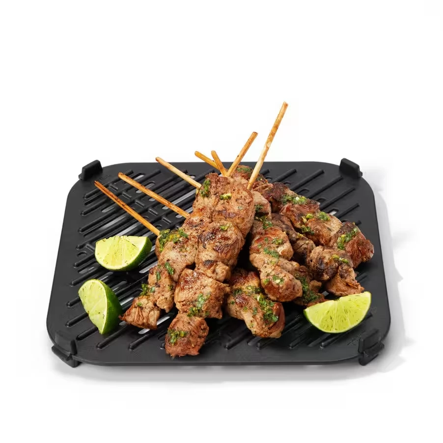 This double-sided, PFAS-free, ceramic-coated accessory expands with new options for the functions of the mold: a barbecue sheet that evokes the taste of the open flame-with barbecue strips, clutter, carbon or cumbersome cleaning. Two -functioning sheet: crisp baking and pizza, which makes you perfect for all your favorite foods or prepares an ideal pizza dough while the tops merge nicely.