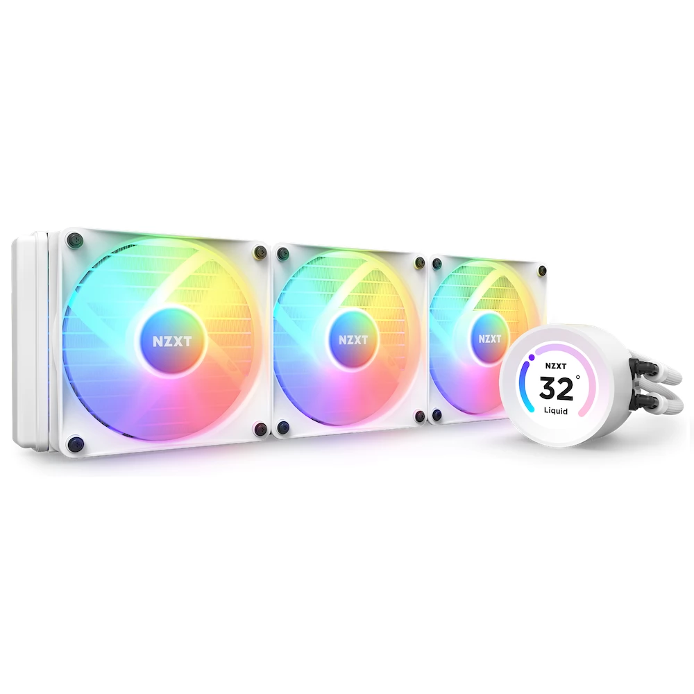 Compact, universal water cooling with 3 controllable 120mm fans with ARGB lighting and PWM regulation.