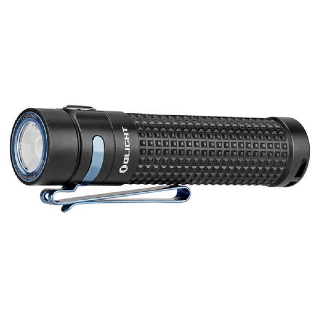 The S2R II baton is an improved version of the extremely popular S2R. As compact as possible. Its length is 5% shorter than its predecessor. Powered by 1 special 3200mAh 18650 lithium battery. The battery provides an extremely long operating time. The combination of the Luminus SST-40 CW LED with a peak output of 1150 lumens and the improved TIR lens provides incredible brightness and a balanced beam of light for the size of the lamp. Five brightness levels (0.5 lumens - moonlight, 15 lumens, 120 lumens, 400 lumens, 1150-400 lumens - turbo level, which becomes lower during heating) and a stroboscope mode can also be selected. features of the proven Baton series (removable belt clip, magnetic end cap, etc.), and the charging unit introduced in its predecessor also appears. The magnetic charging platform is not much bigger than a coin. The charging cable ends in a USB connector, so it can be charged almost anywhere (from a computer, from a USB cigarette lighter connector in a car, or with a mobile phone network adapter). All you have to do is bring the end of the lamp close to the magnetic charging platform, which will stick to it in an instant thanks to the magnet. The charging process is indicated by the charger with green and red lights. It can be locked against accidental switching on with the help of the key lock function. In this case, when the switch button is pressed, the red light of the switch indicates that it is closed. The side switch also lights up when the battery is low. In the case of a green LED, the battery charge is above 70%, a yellow LED indicates a level between 15 and 70%, while the LED turns red below 15%. The included two-way clip can be removed and installed at any time, and can be practically fixed in countless places. In addition, of course, the magnetic battery cover can also be a great help if it is attached to a suitable surface and you can work with the light with your free hand. When switched on, the light gradually increases to the maximum brightness level to reduce the harmful effects of accidental glare. It gradually fades when switched off. The electronics of the lamp are protected against reverse polarity. The overheating protection reduces the maximum brightness after about a minute and a half. With the help of a timer function, it can be set to turn off automatically after 3 or 9 minutes. The lamp works with a special 18650 battery, which can be ordered by clicking HERE. The negative pole is also led to the positive side of this, because this is how the magnetic charging base can charge. It also works with "traditional" 18650 batteries, but these batteries cannot be charged by the lamp, an external charging unit is required for this.