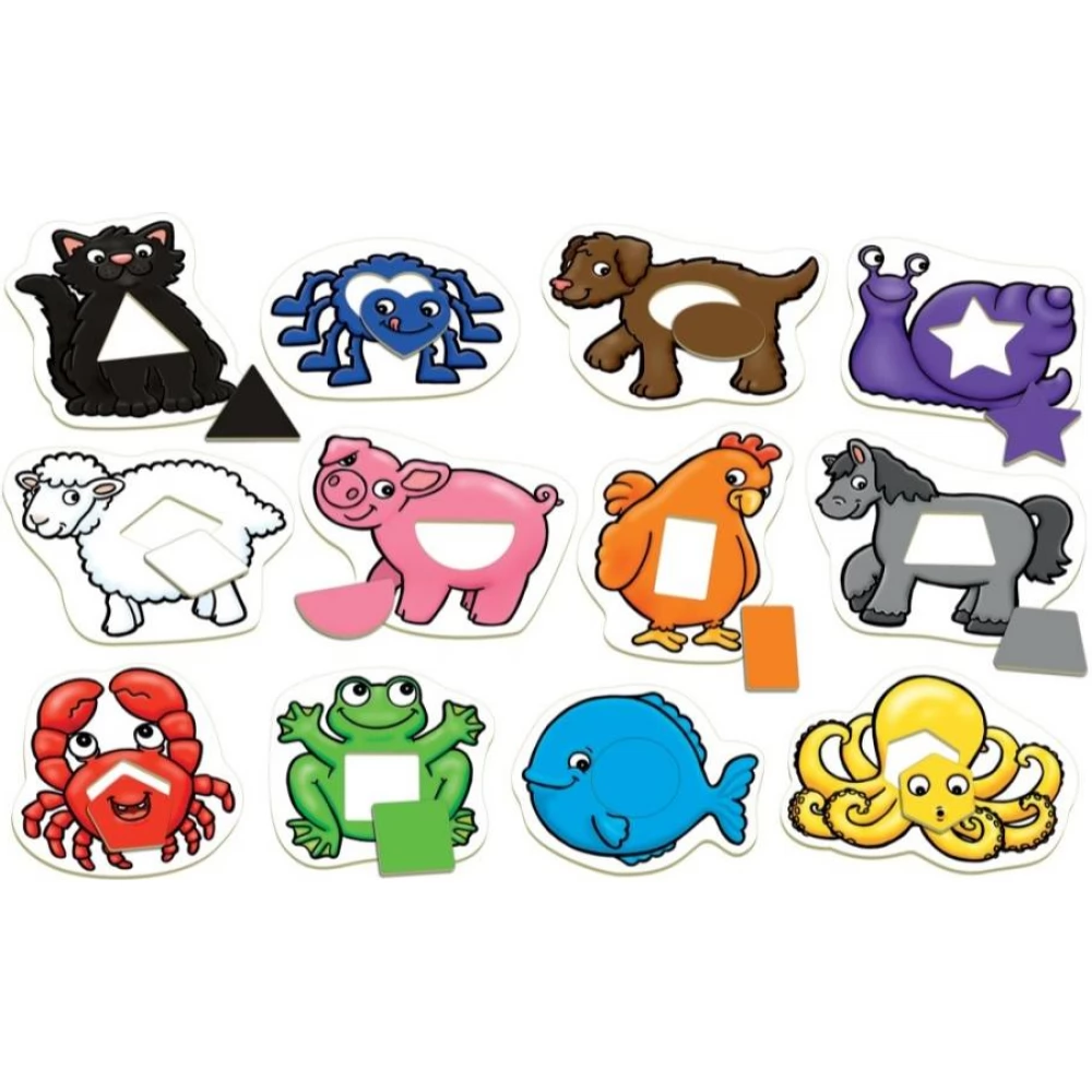 - Matching Shapes: Spread out the animals and shapes, then encourage your child to match the shapes to the animals and name the shape.