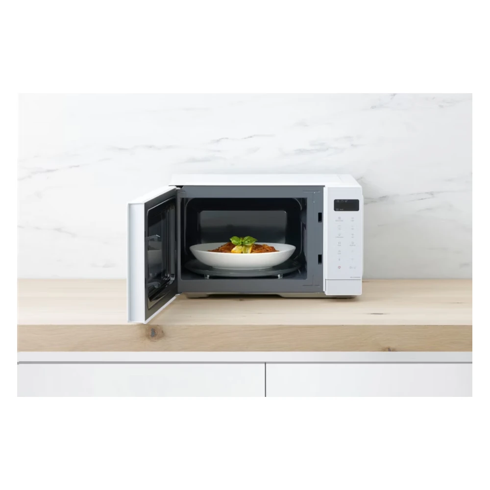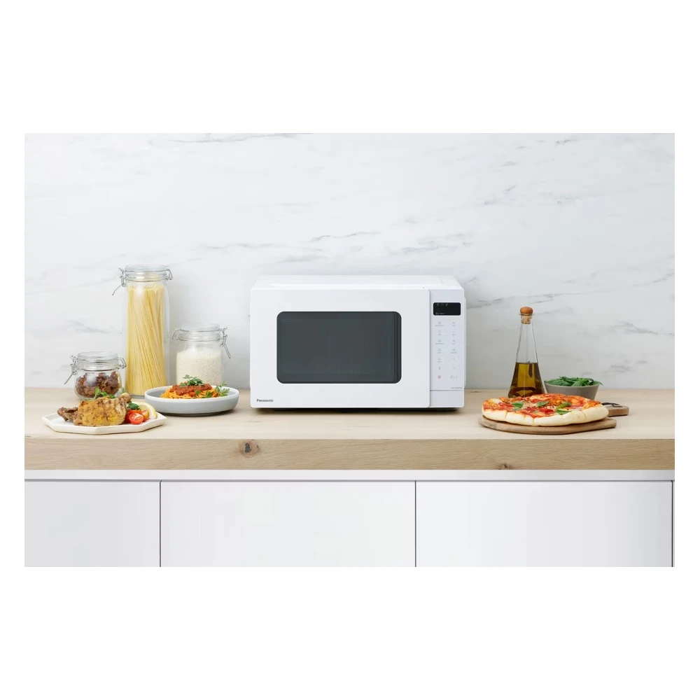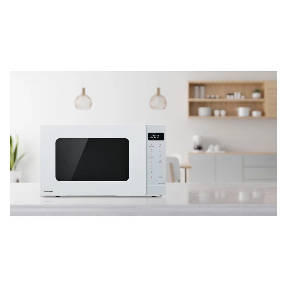 The Panasonic NN-K35 grilling micro-oven with its minimalist, modern appearance fits perfectly into any kitchen interior. From the white LED display through the compact size to the matte door surface and smooth touch panel, this microwave makes cooking pleasant with all its features.