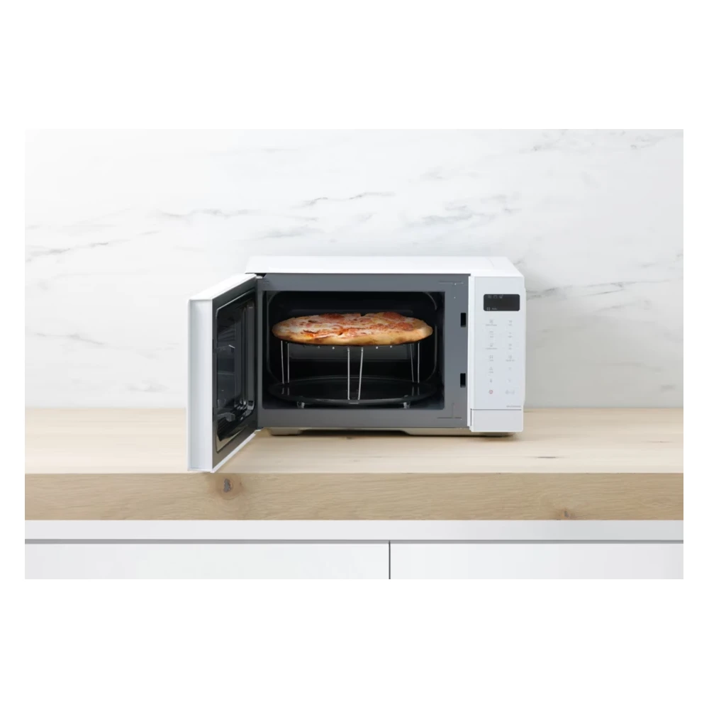 In addition to all the advantages of single-function microwave ovens, the Panasonic NN-K35 increases its versatility with a built-in grill. The 1000 W quartz grill quickly toasts and bakes traditional grilled food such as vegetables, chicken or even pizza. You can choose between two levels, 1000 W and 700 W. The metal grid is included as an accessory.
