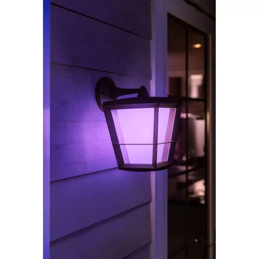 You can now extend the HUE to the outdoor. The Econic wall lamp can be connected to your existing Hue Bridge to enjoy all features, such as out-of-home control and scheduling, and create any mood. Hue Bridge is not an accessory.