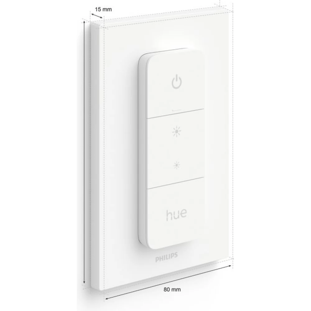 Dim or brighten the room, change light scenes or set the best light according to the time of day. The Hue dimmer switch can be attached to walls or magnetic surfaces, but can also be used as a remote control anywhere in your home.