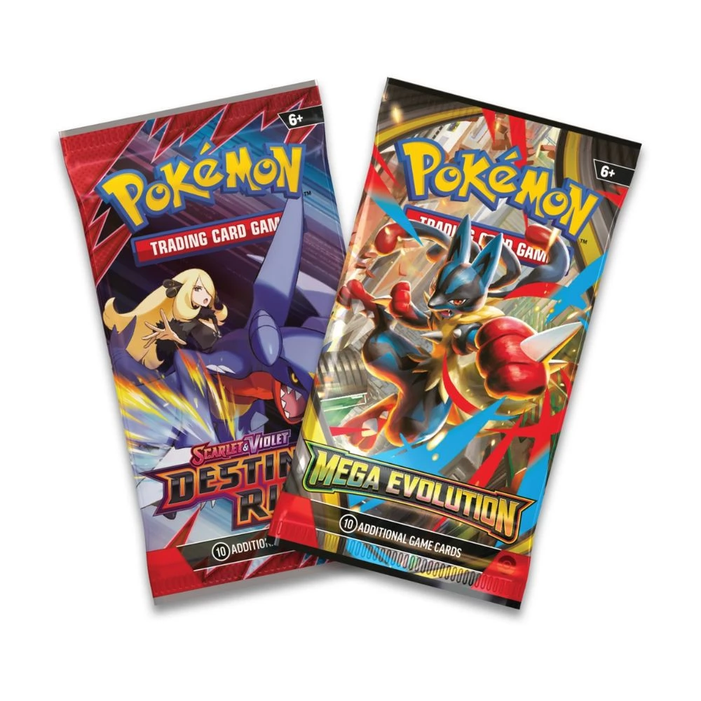 The box contains two booster packs, a sticker set and a special art Pokémon card depicting the unique artwork of that Mini Tin. Collect them all and make the whole picture!