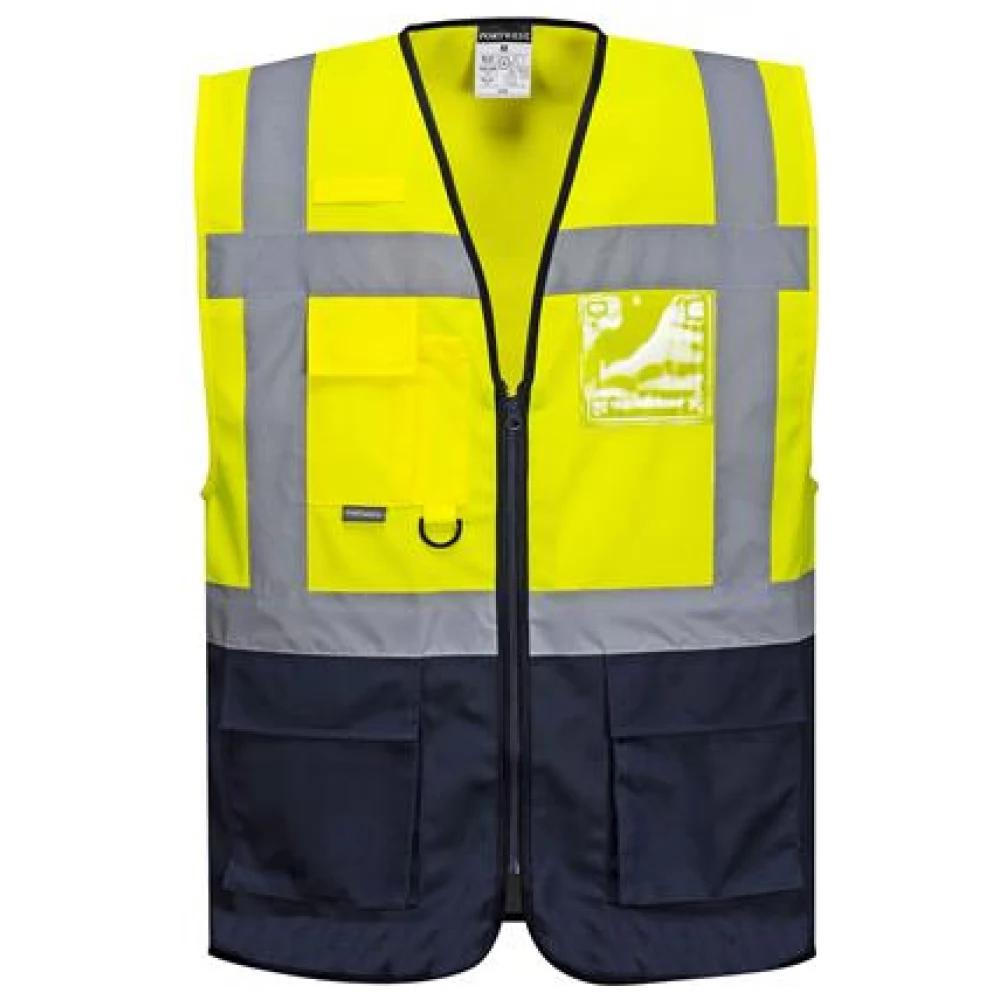 PORTWEST Warsaw Vezetői mellény jól láthatósági M size narancssárga-tengerészkék