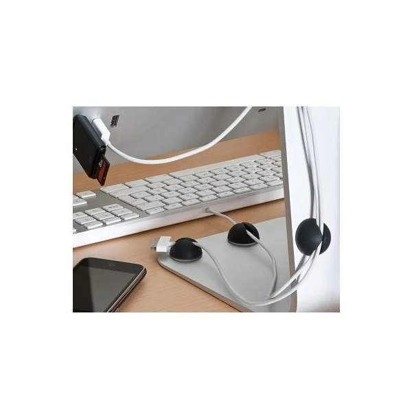 This flexible cable guide secures cables and prevents charging cables or other cables from slipping behind and under the table.