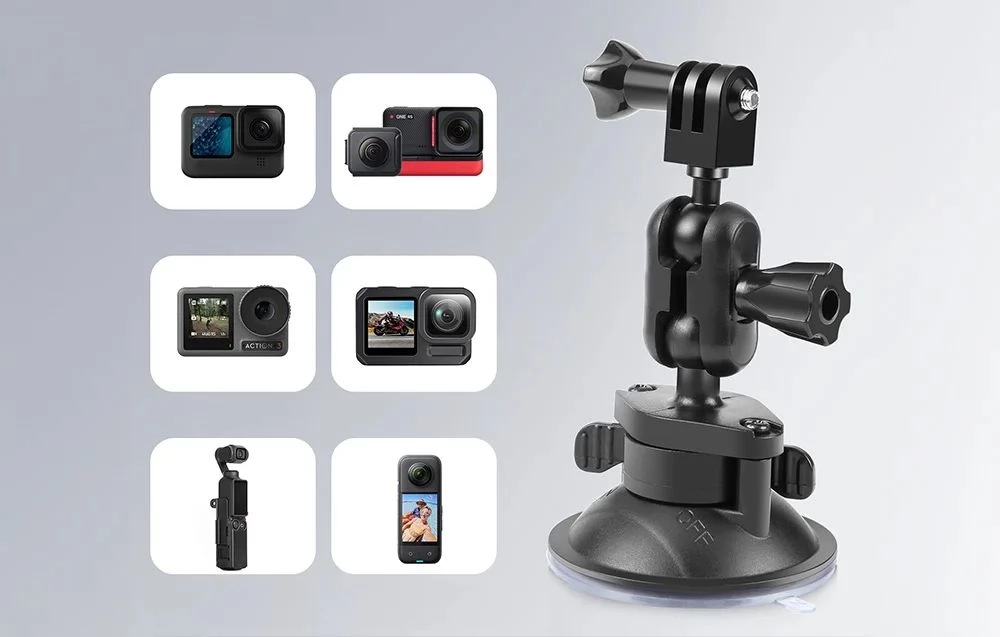 - DJI Osmo Action 4/Osmo Action 3/Action 2/Osmo Action, GoPro HERO12 Black/HERO11 Black Mini/HERO11 Black/HERO10 Black/HERO9 Black/HERO8 Black/MAX/HERO7 White/HERO7 Black/HERO7 Silver/NEW HERO/ Fusion/HERO6 Black/HERO5 Black/HERO5 Session/HERO Session/HERO4 Session/HERO4/HERO3+/HERO3/HERO2/HERO, Insta360 GO 3S/X4/Ace/Ace Pro/GO 3/X3/ONE RS 1-Inch 360 Edition/Insta360 ONE RS 4K Edition/Insta360 ONE RS 1-INCH EDITION/ Insta360 ONE RS 360 Edition/GO 2/ONE X2/ONE R/GO EVO/ONE X/Nano S/Air/ONE/Nano