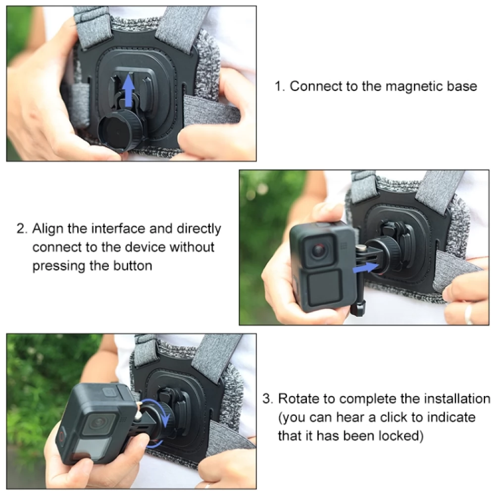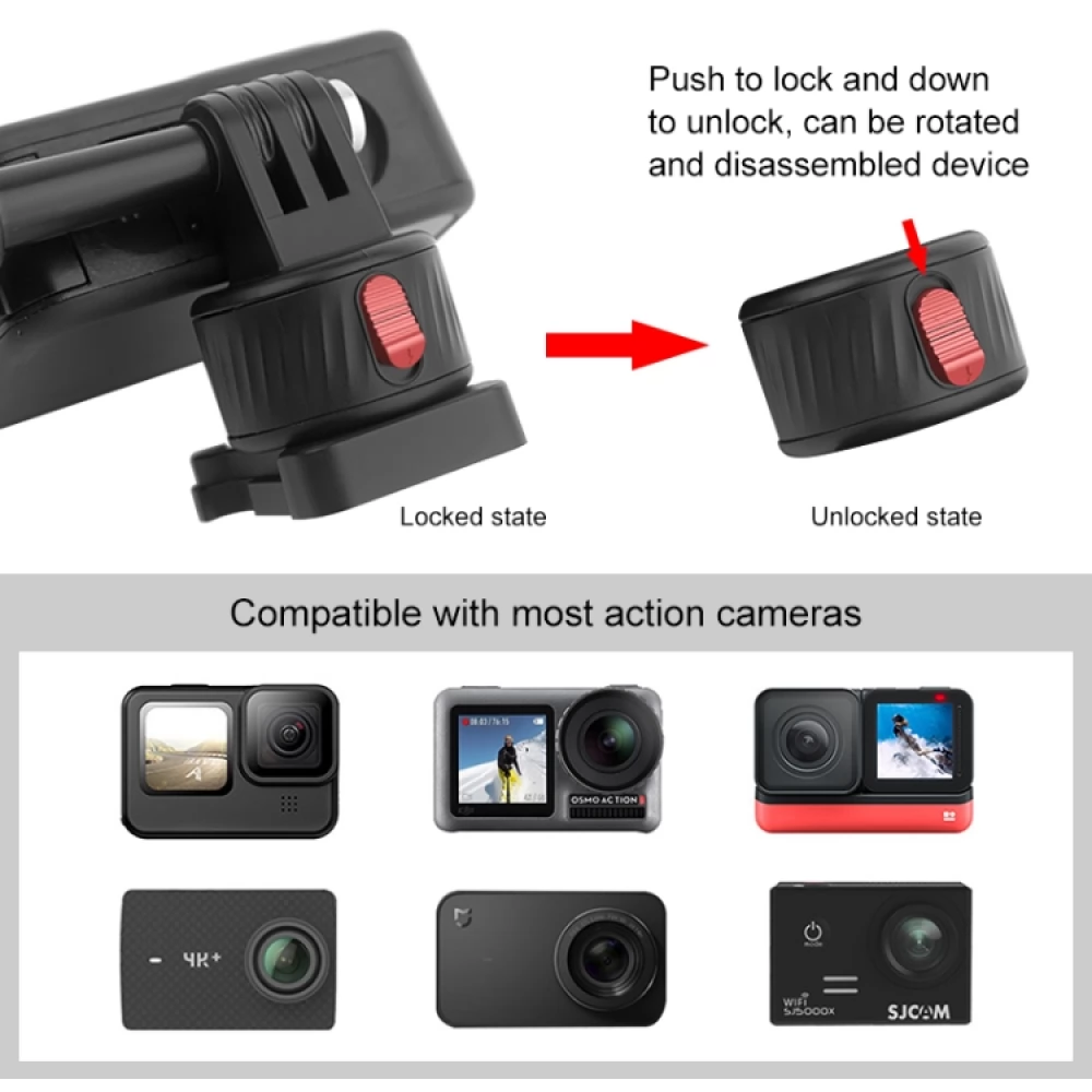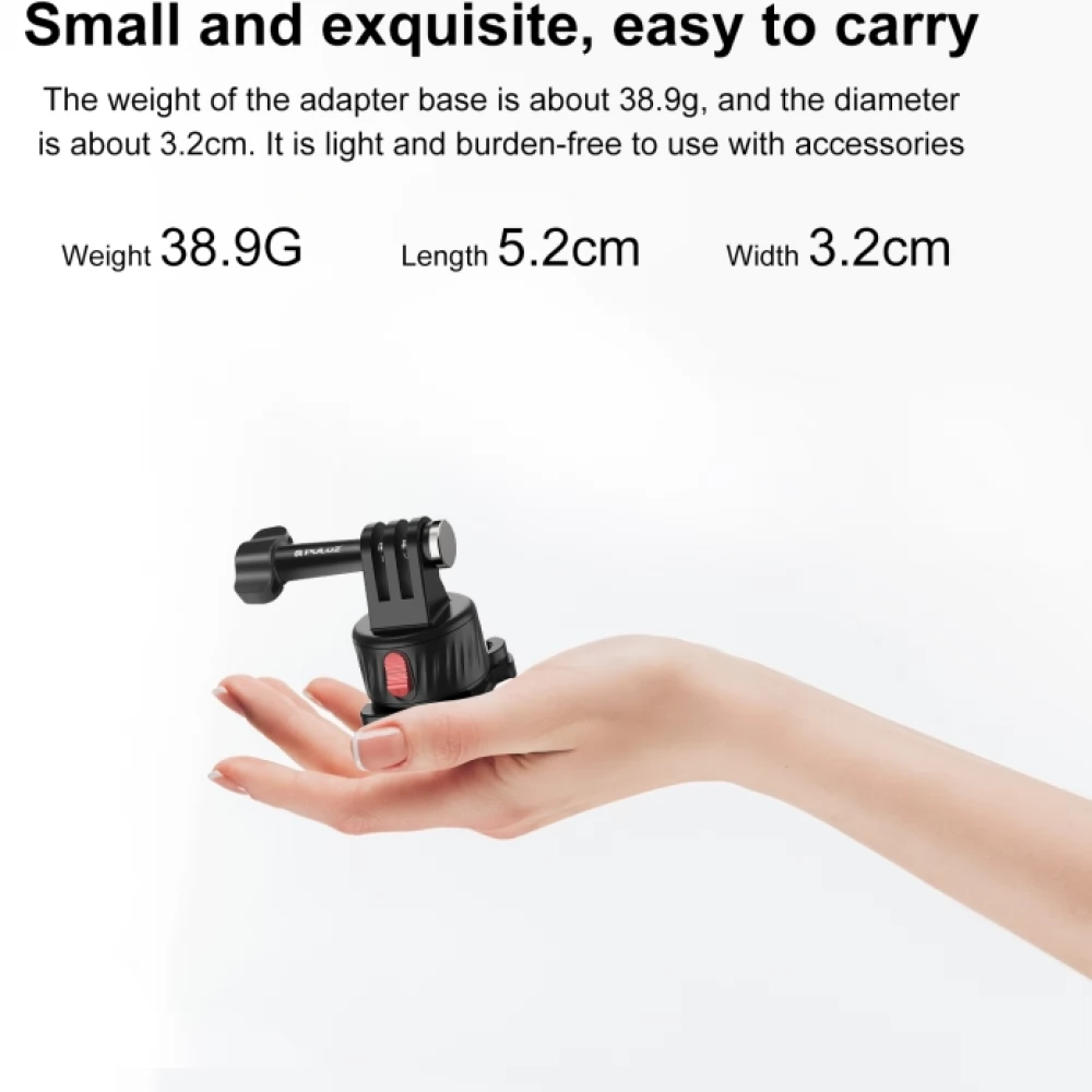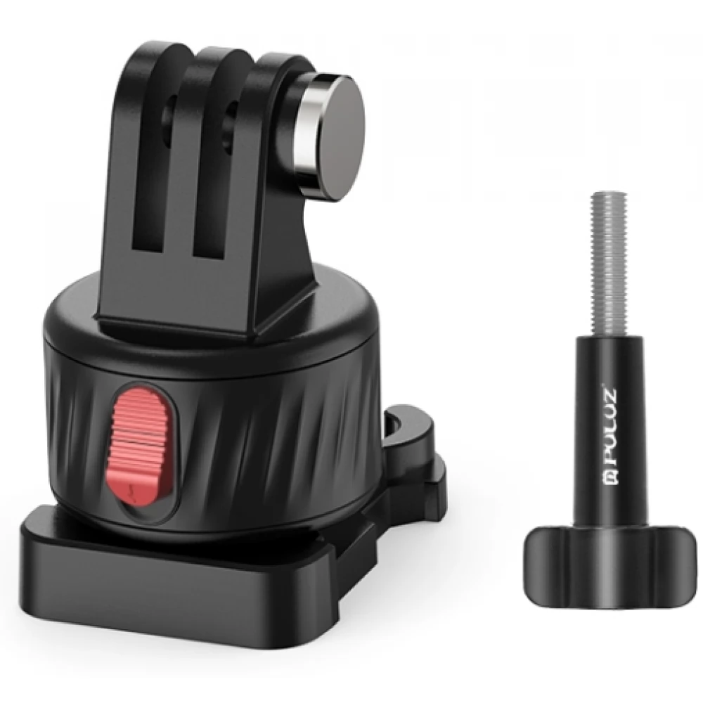 PULUZ PU707B is a magnetic adapter for sports cameras with a quick-release connector that allows you to quickly move the camera to various mounts, such as selfie sticks, suction cups, head mounts, etc. The adapter is compatible with many sports cameras, e.g. such as DJI Osmo Action 3, Osmo Action, Gopro Hero series models or Insta360 One series models. In addition to the quick release, the PU707B also has a magnetic lock that allows you to fasten and release the camera. You just need to move the locking slider and rotate the camera in the adapter to remove it, which greatly improves switching between, for example, handheld shots and shooting from different tripods.