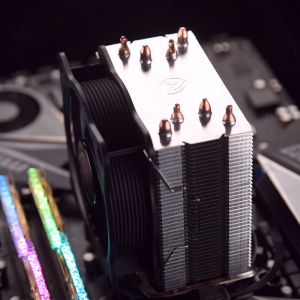 Tower design, heat-conducting pipe universal CPU cooler with 100mm PWM controlled fan.