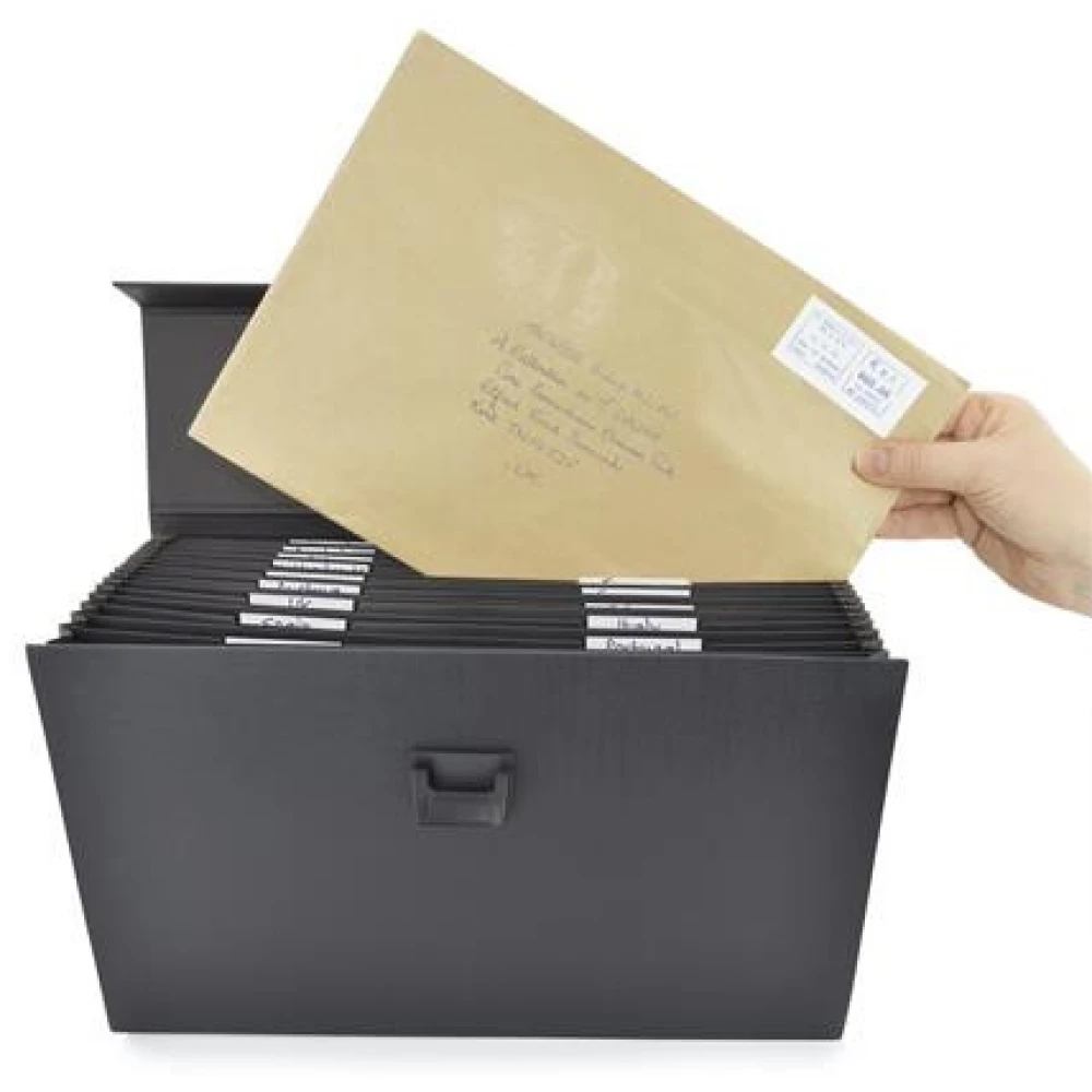 - Practical accordion bag suitable for storing A4-sized papers