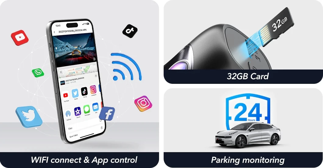 - Parking Monitor Functions: G-Sensor, Timelapse