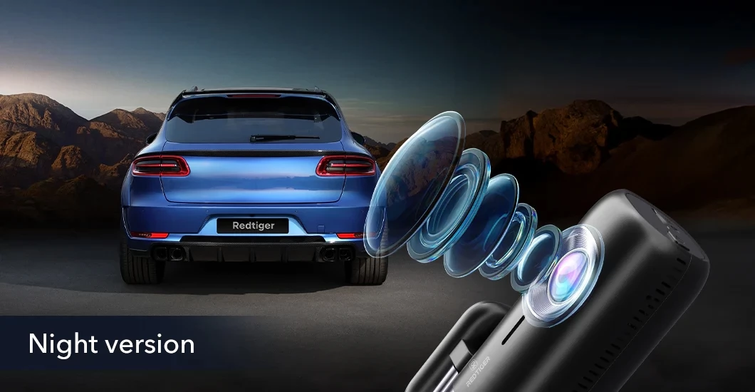 The Redtiger F9 camera captures 4K from the front camera and 1080p from the back camera so you can capture every detail on the road. Thanks to the light equalized technique and the large F1.5 compartment, image quality remains excellent even between challenging light conditions. Super Night Vision provides excellent visibility at night, so this model is ideal at any time of the day.
