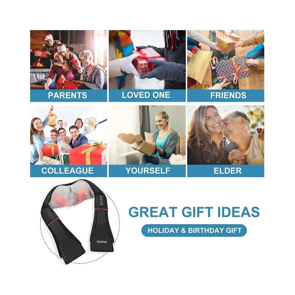 Forget stiff necks and visits to expensive massage parlors. RENPHO U-Neck 1 offers a deep Shiatsu massage that effectively relieves muscle tension and stress from the comfort of your home or office. Thanks to the ergonomic design and the simulation of human hands, you get professional care exactly where you need it most.