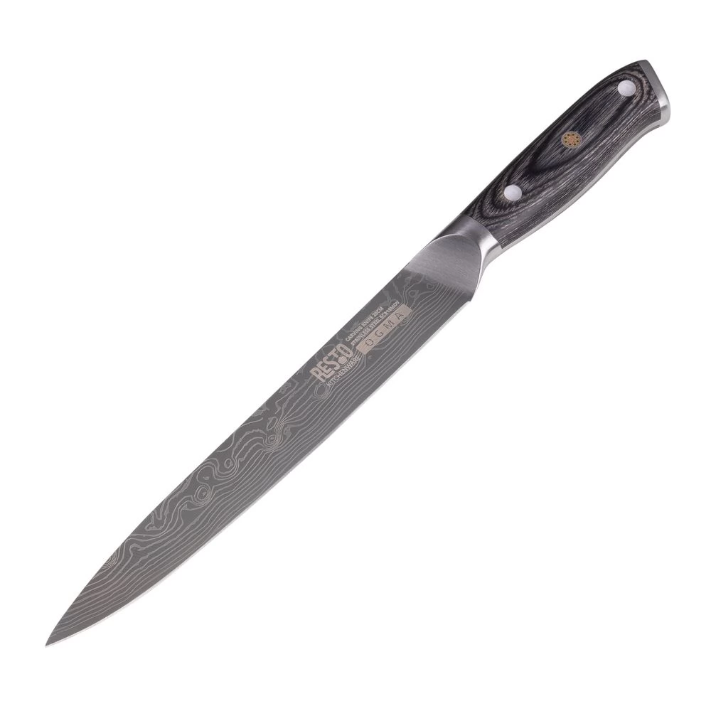 - Laser engraved Damascus steel stylized blade