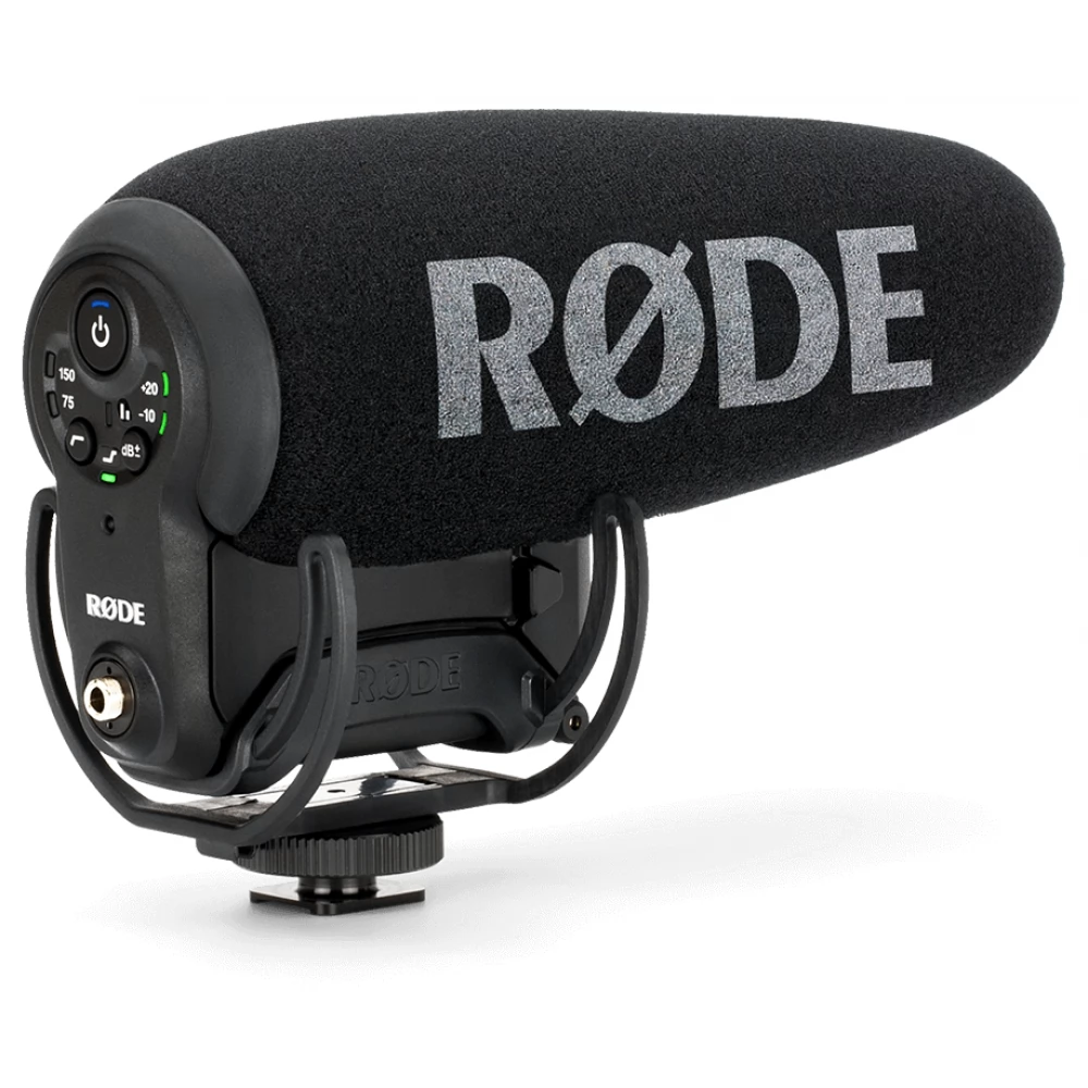 The RØDE Videomic Pro+ is a video microphone with the characteristics of a real shotgun microphone, with advanced digital functions, which can be connected to the audio input of most professional and consumer cameras, as well as DSLR/MILC cameras and portable audio recorders, can be securely fixed using a hot shoe suspension, and thanks to the special Rycote Lyre anti-vibration suspension, completely excludes the noises resulting from the treatment. There is also a 3/8" threaded stand socket at the bottom of the hot shoe connector, so the microphone can also be mounted on microphone stands with a standard thread.