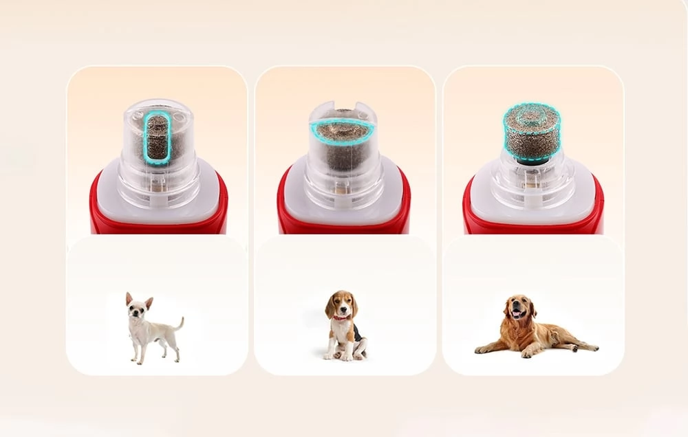 Thanks to the three special holes, the nail file is suitable for the karma of small, medium and large pets. This facilitates comfortable treatment, regardless of the size of the pet. In addition, the nail grinder works extremely softly, producing only 45 noise levels. As a result, pets do not stress during care, making the process much easier.
