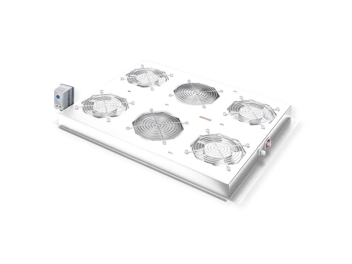 The roof fan units can be used flexibly in any 19 "cabinet. Each fan unit has two sets of mounting consoles. With the standard set, you can secure the fan unit to any height unit of the network or server cabinet. The switch and adjustable thermostat offer optimal customization options. The model is available in standard gray (RAL 7035) and Black (RAL 9005).