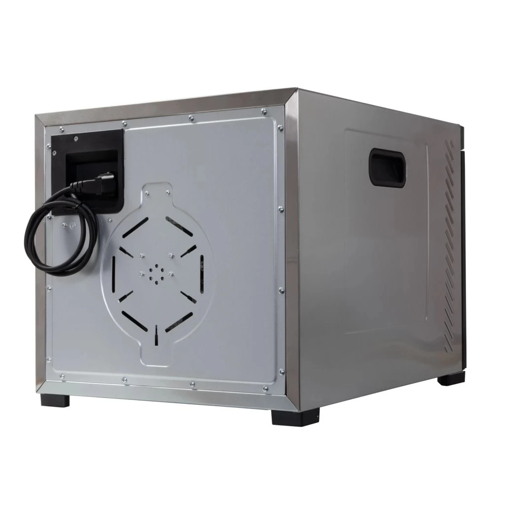 This model contains 10 large stainless steel drying plates that can be washed in a dishwasher. The tray size is 39.4 × 39.4 cm and offers a record -breaking 1552 cm2 drying surface. The plates are made of high quality, medical quality stainless steel, and the entire dryer corresponds to a very strict LFGB standard for direct contact with food. In addition, stainless steel provides longer life.