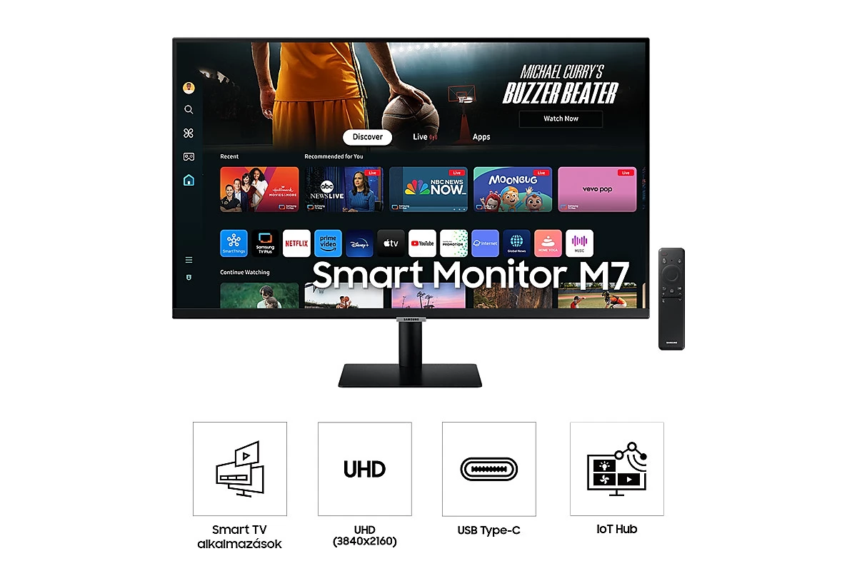 The Samsung Smart Monitor M7 32" LS32DM700UUXEN is a true multifunctional device, which is the perfect choice for those who love comfort and endless possibilities. This monitor combines high-quality image reproduction and versatility, as it not only has typical monitor functionality, but also built-in services, such as applications or other entertainment functions. And with the accompanying remote control, it can be controlled from anywhere in the room.