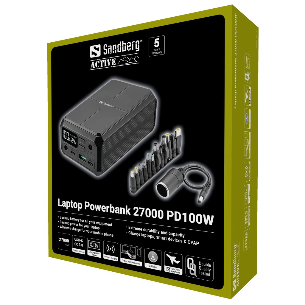 The Sandberg Laptop 27000 PD100W PowerBank is the perfect PowerBank, which provides stunning speed, powerful power and huge 27000 mAh capacity. With this powerbank, you can always be sure that you can recharge any mobile device quickly and efficiently - wherever you are. It can be used with both DCs up to 84 W, traditional USB-A and USB-C 27+100W inputs, so you can use almost all types of mobile devices in record time, including laptops. You can completely control the charging process through the smart, informative display.