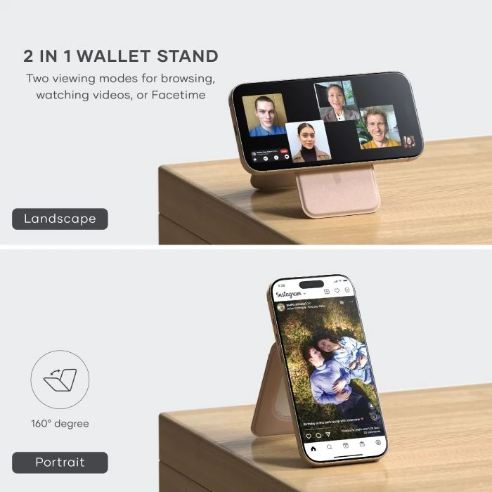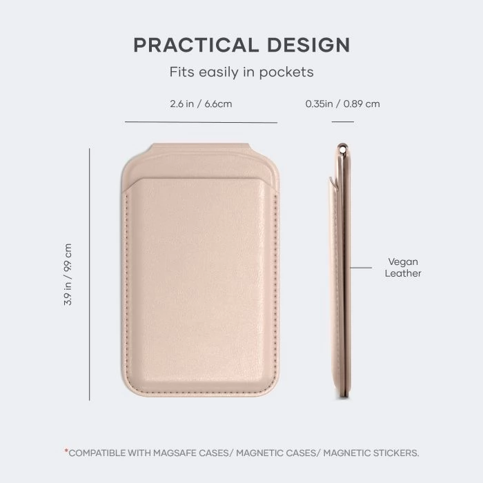 The magnetic wallet rack made from Stechi vegan leather perfectly combines style, functionality and sustainability - a powerful complement and perfect companion for everyday needs. The elegant, vegan leather wallet, designed with Magsafe-compatible technology, can be easily and securely secured to your iPhone in an instant, so you can take your cards, ID cards or even cash with your cards, wherever you go. The versatile magnetic wallet is designed to serve as a rugged and massive rack for your iPhone, so you can browse on the Internet, streamed videos, or make a facetime call in recumbent and lying mode.