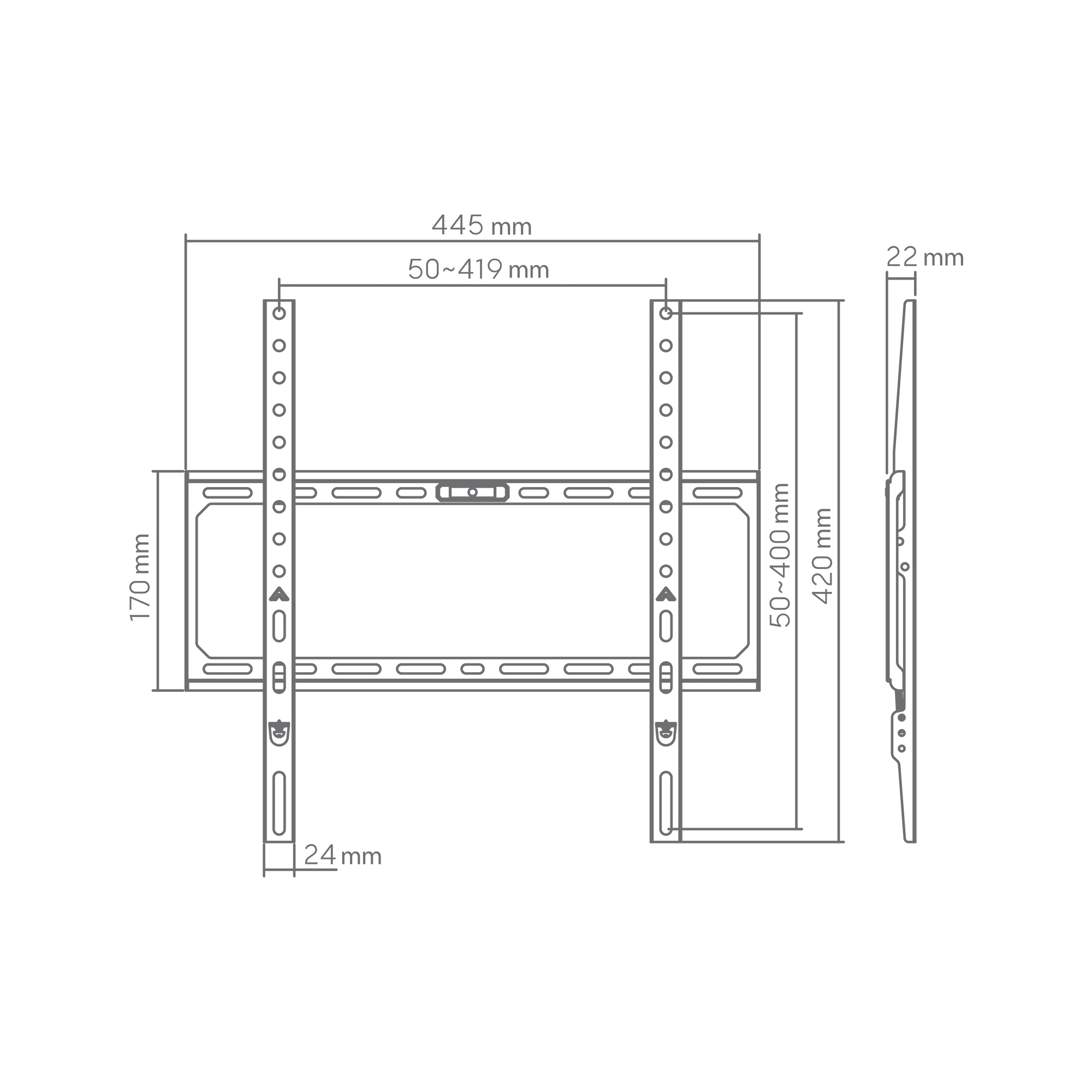 Fix your TV with the SBOX BL-3744F fixed wall console designed for screens between 32 "and 75". With a durable steel structure and a thin, 22 mm profile, it offers a slender, space-saving solution. It supports VESA from 50x50 to 400x400 and 45 kg, providing a stable and reliable setting. Easy to install thanks to the removable VESA plate.