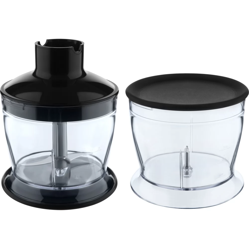 The Sencor SHB 5501CH-EUE3 stick blender can help you quickly prepare cream soups, sauces, and baby food. The 1200 W motor is equipped with a variable speed function. The chopping blades based on Titanium Quad Blade Technology are also suitable for preparing hot foods. The ergonomically designed handle guarantees a safe and comfortable grip. The 800 ml lidded mixing glass can be used to process a large amount of raw materials or even be used as a measuring cup, and there is also a 500 ml container, which is excellent for chopping.