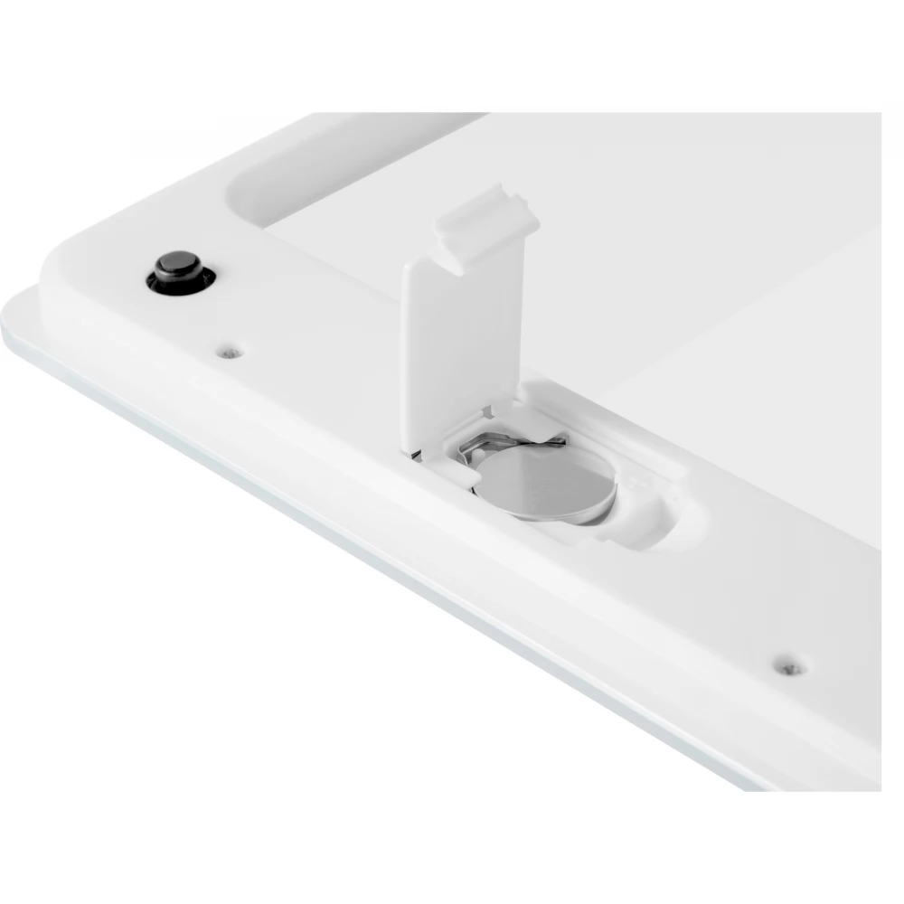 The operation of the scale is ensured by 1x 3 V lithium CR 2032 type alkaline battery. It is already included in the package. The low battery capacity level is indicated by an icon on the built-in LCD display. The scale automatically turns itself off after 60 seconds of inactivity.