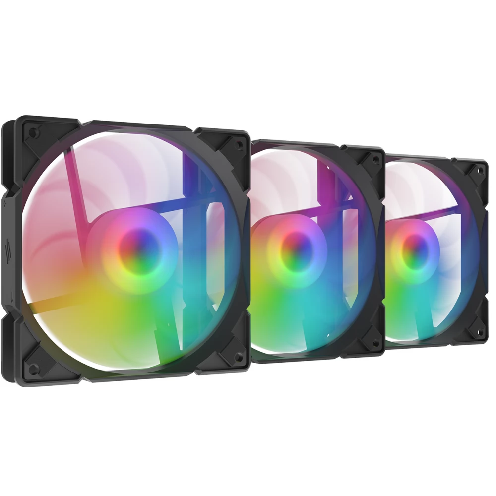 3 12cm, controllable ARGB lighting housing cooling fans with 4-pin motherboard connector (+3-pin ARGB).