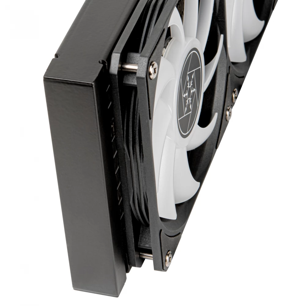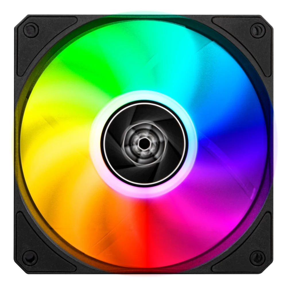 Compact, universal water cooling with 2 narrow (16mm wide) 120mm PWM speed control fans and controllable ARGB lighting CPU water cooling block. The special feature of the water cooling is the 22 mm thick water cooling radiator, which means 38 mm thickness with the 16 mm wide fans, the pump integrated into the radiator, which reduces the resonance on the motherboard, and the rotatable CPU water cooling block.