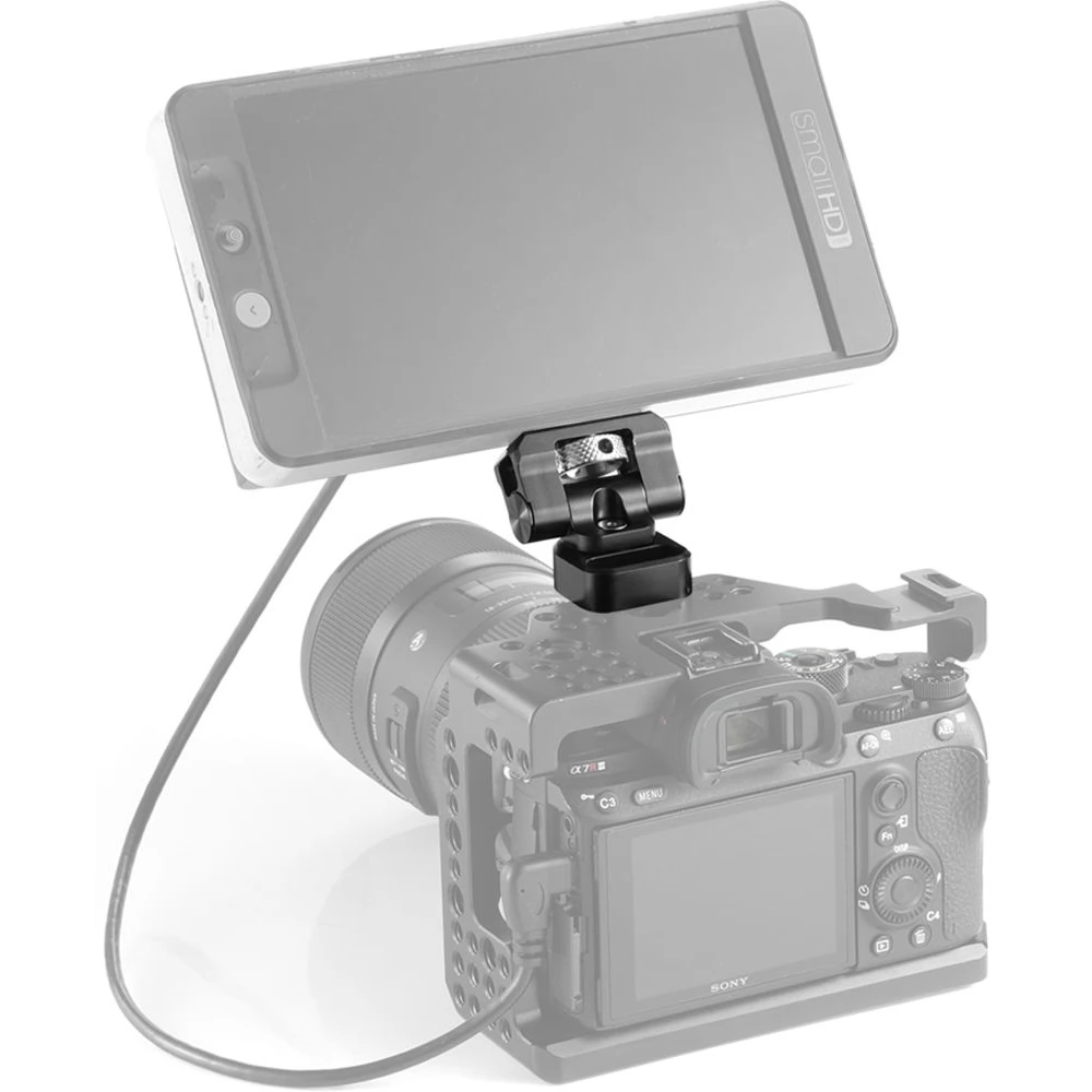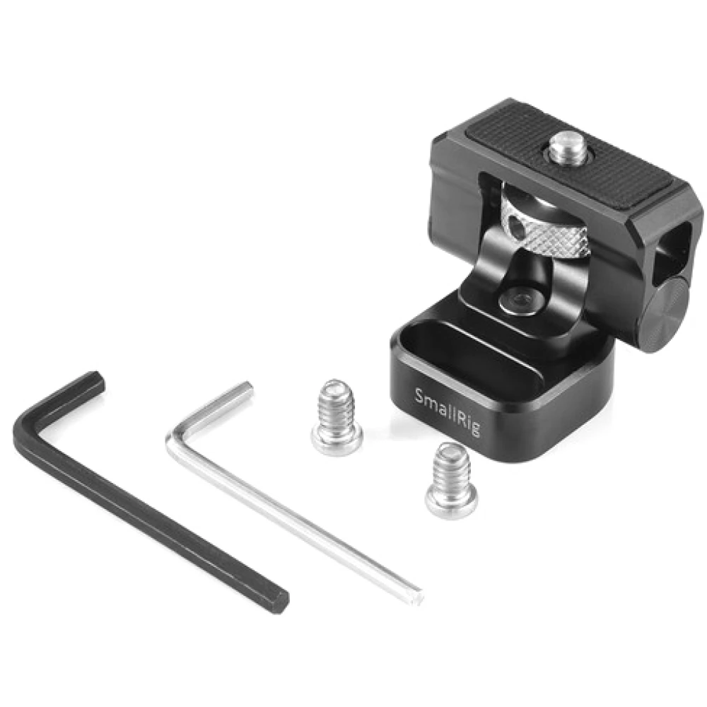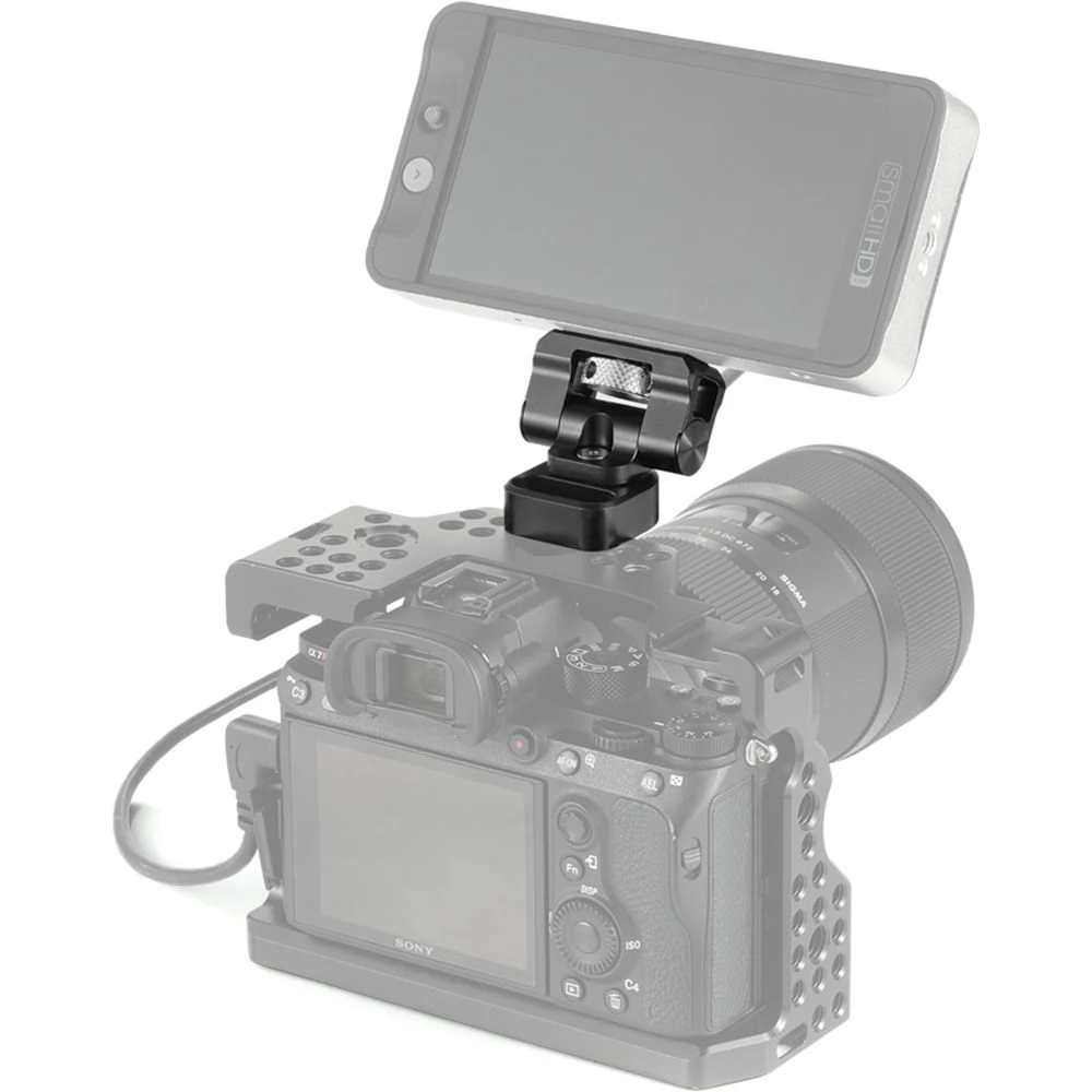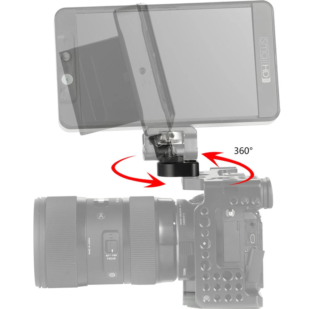 Rotatable and tiltable monitor holder adapter for SMALLRIG professional built-in camera systems.