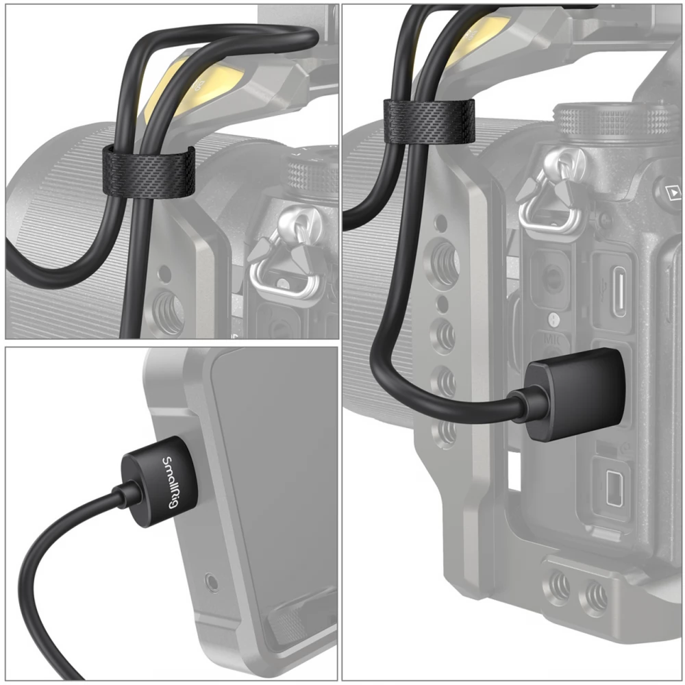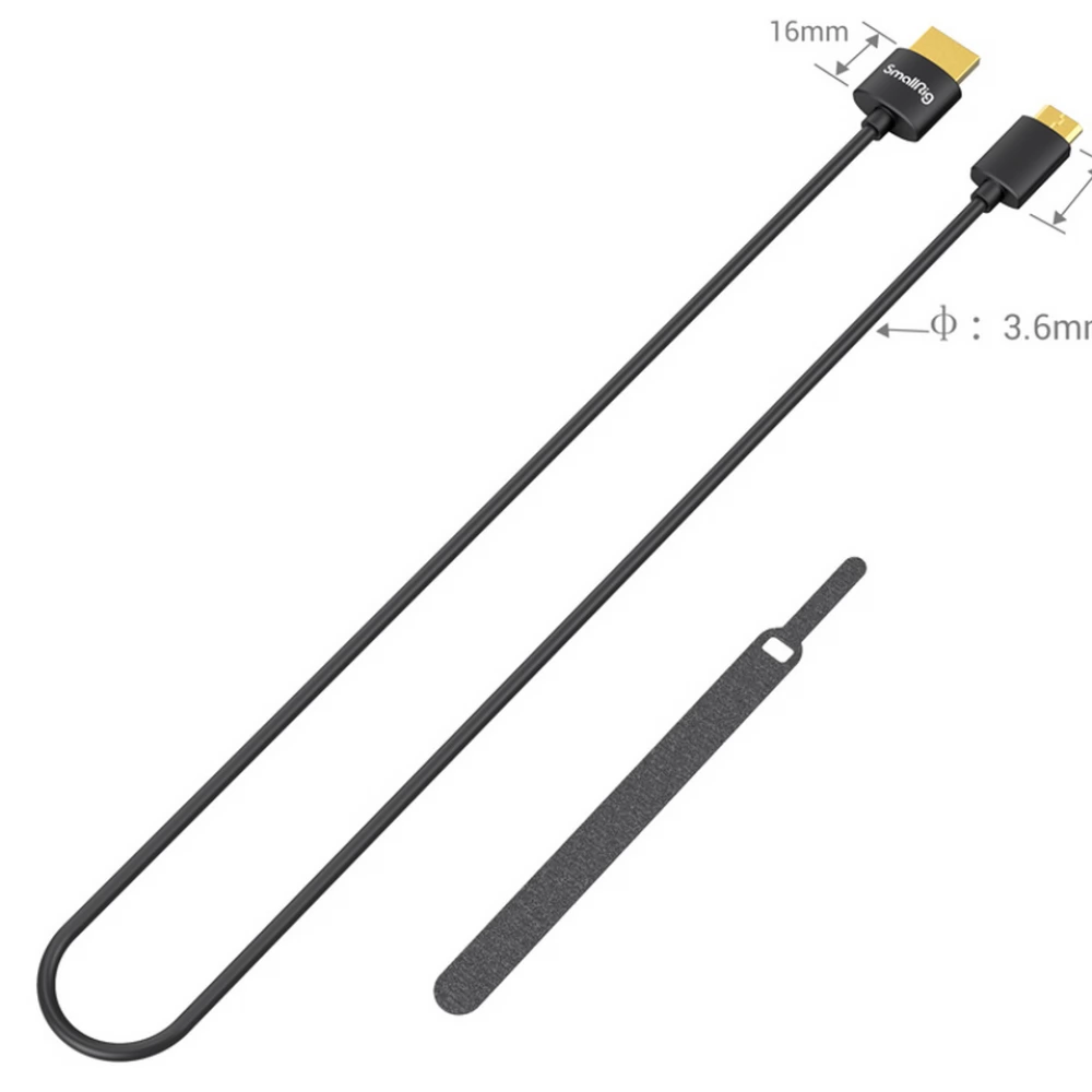 Ultra-thin HDMI cable capable of transmitting 4K video recordings for SMALLRIG professional built-in camera systems.