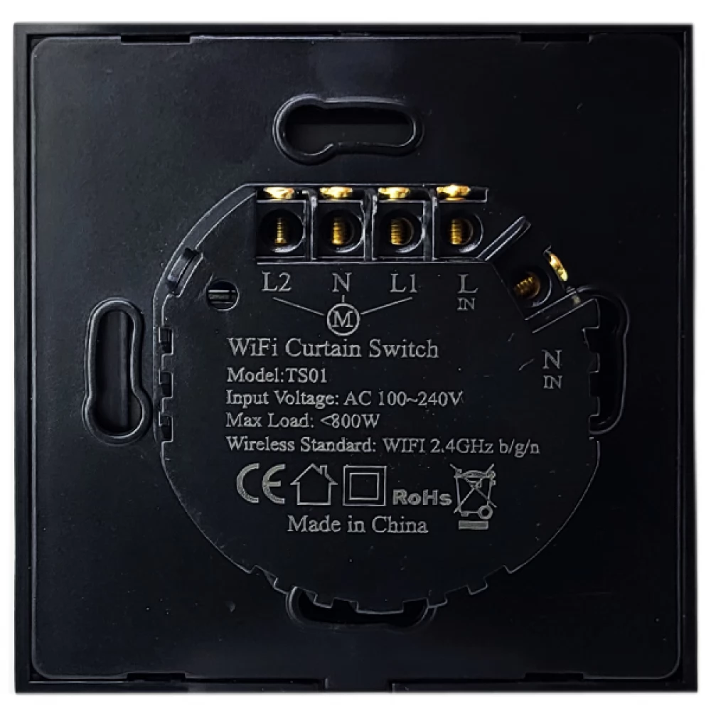 The switch is available not only in black but also in white. Like the Sonoff and SmartWise switches, it is equipped with an elegant glass front panel, touch switch, the style of the frameless black glass front panel is very similar to the Sonoff TX T1 EU switch family.
