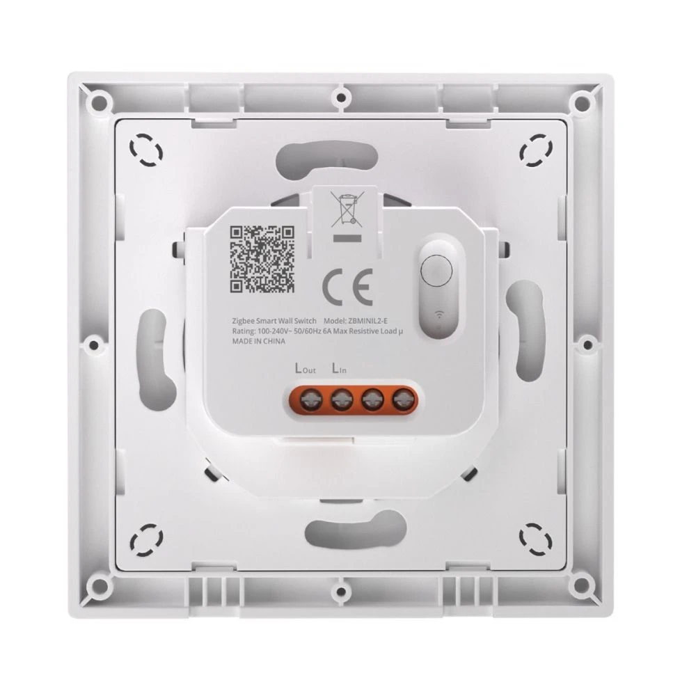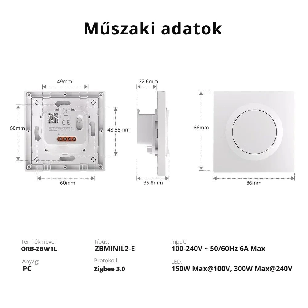 The SONOFF Orb-ZBW1L is a Zigbee 3.0 smart wall switch of the Fusion series, without neutral wire, inside which the ZBMini-L2 takes care of the operation. Handles up to 6 A load and allows you to set timers, countdown timers and smart scenes. It is also optimized for especially low-power LED loads (min. 3 W), so it offers a solution that can be easily retrofitted into old junction boxes without an anti-flicker module. The switch can be used both in the SONOFF ecosystem and on open platforms: Zigbee pairing is easy, and it is also compatible with Home Assistant (ZHA/Zigbee2MQTT) systems. The external wall switch (on S1/S2 inputs) preserves the usual manual control, while automation via Zigbee also works.