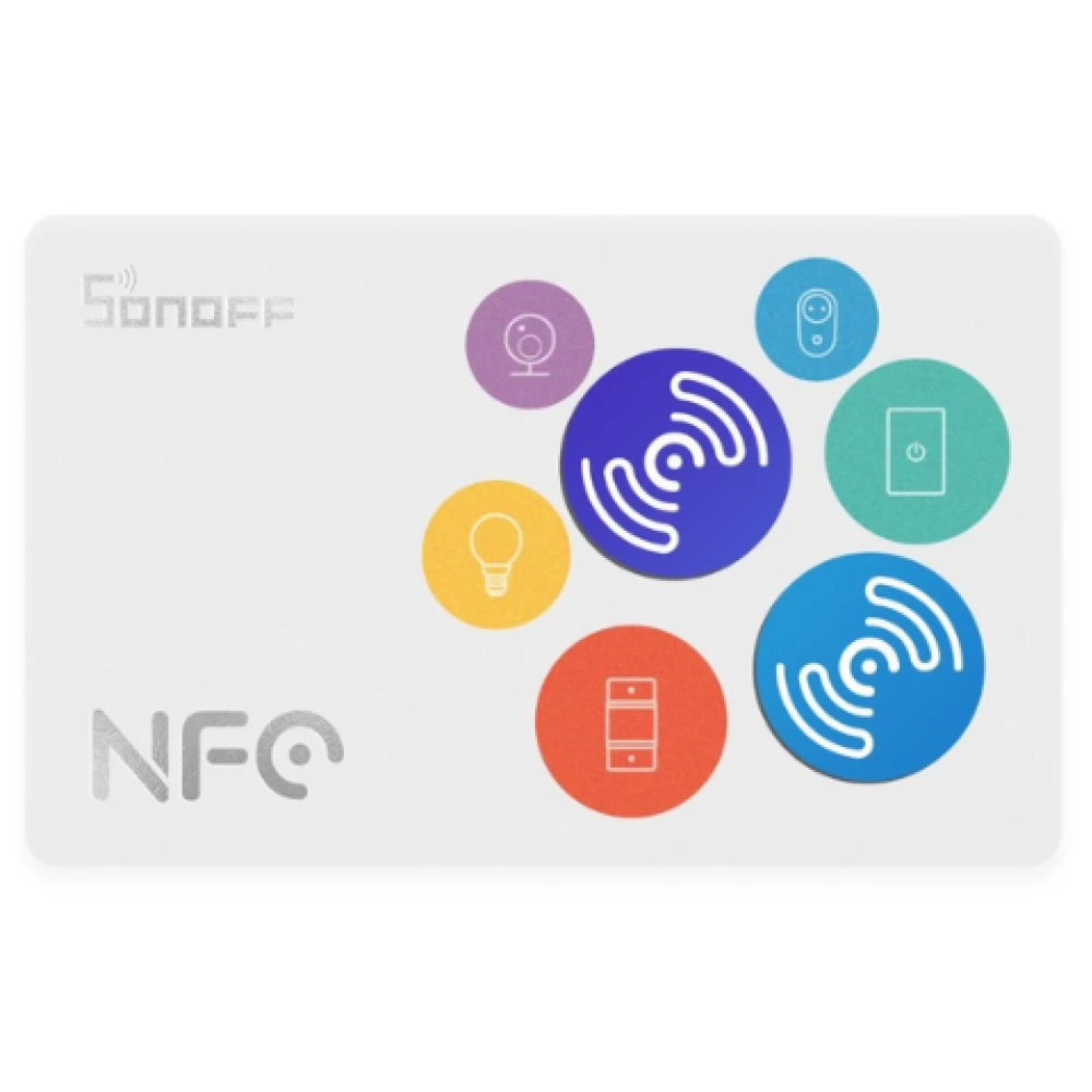 There are two NFC tags with self-adhesive backs on Sonoff's plastic card, which can be set to run eWeLink automations (scenes) using an NFC-capable phone.