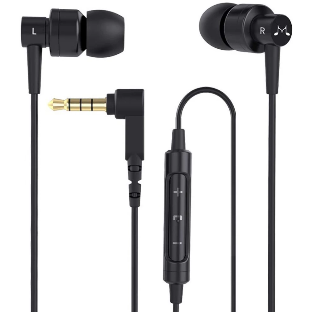 Quality wired earphones with machined aluminum housing, composite membrane and neodymium magnet dynamic driver and SoundMagic Signature sound tuning. With Clear Voice technology microphone and volume control.