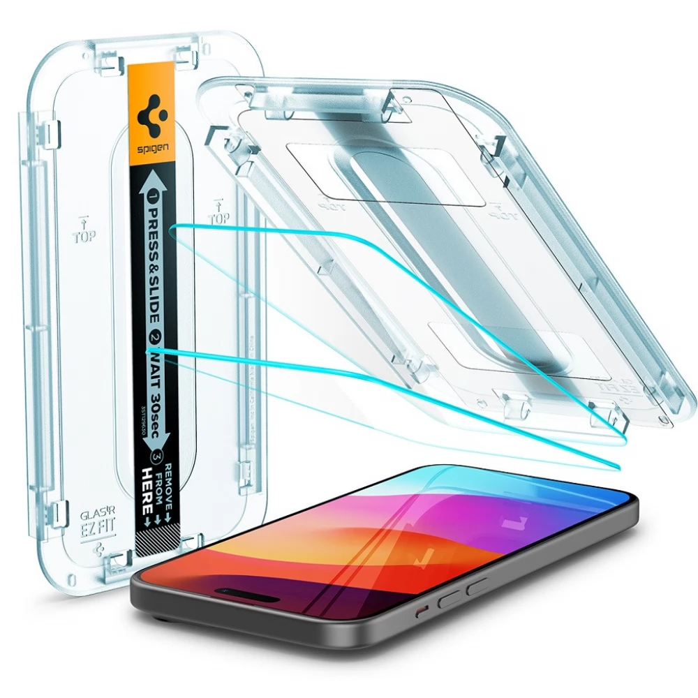 SPIGEN Ez Fit screen protector foil shockproof foil (az arched parts is!) Tempered Glass (tempered glass) Apple iPhone 15 2 piece / box