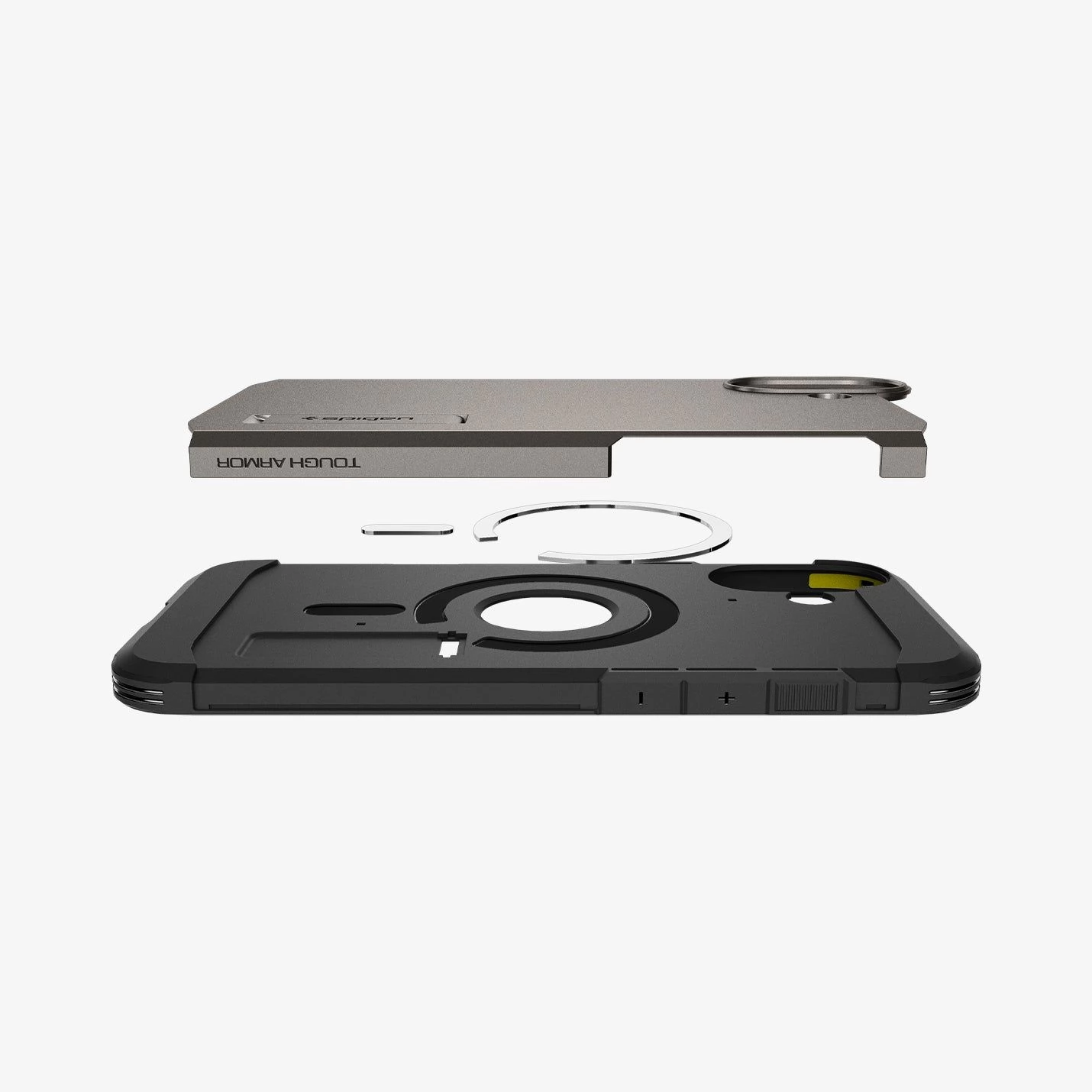 SPIGEN Tough Armor MagFit back panel kickstand iPhone 16 dark grey