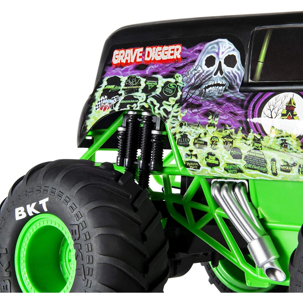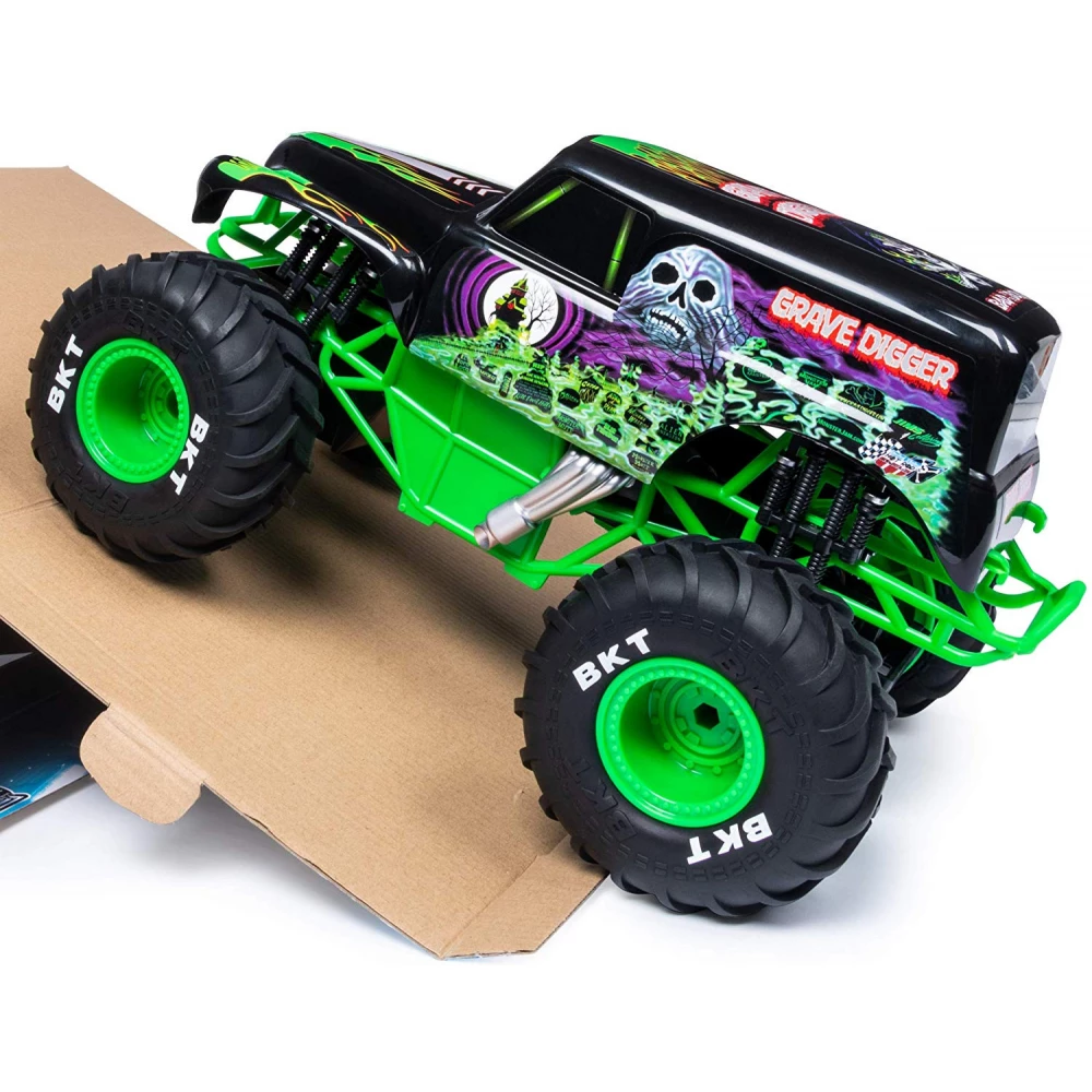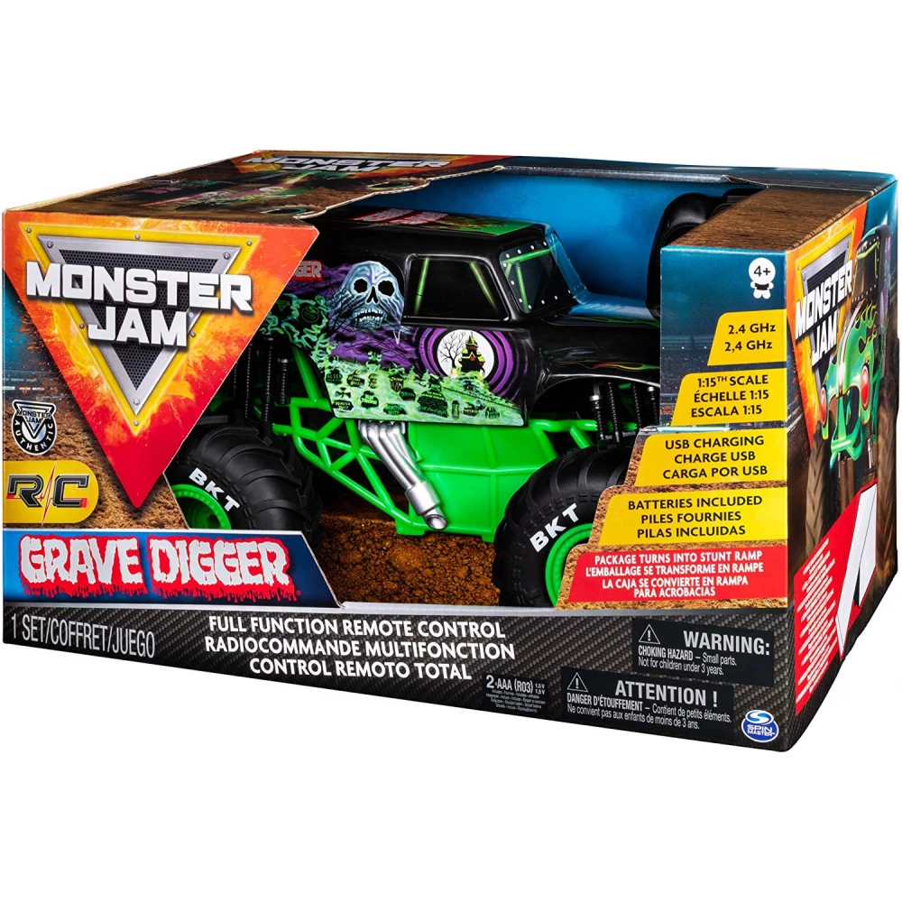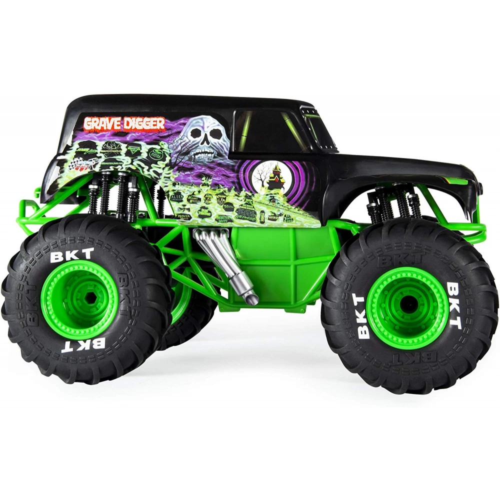 Larger 1:15 scale, detailed Grave Digger remote control Monster Truck SUV. The Spin Master Grave Digger is based on an official license, an accurate replica of the real Grave Digger on TV.