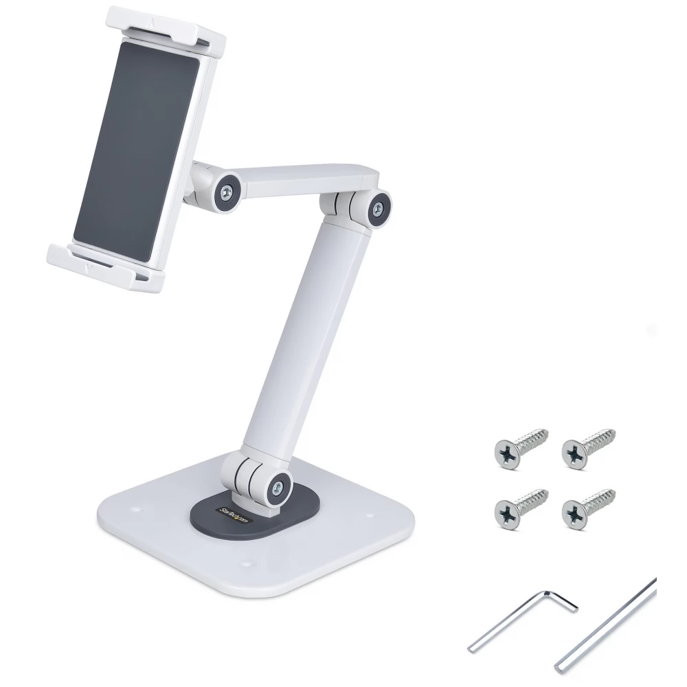 It supports tablets up to 12.9 inches, 5-8.9 inches (12.7-22.7 cm) wide and 1.0 cm thick.