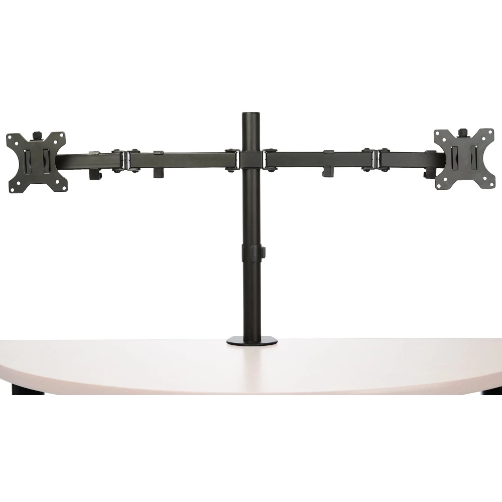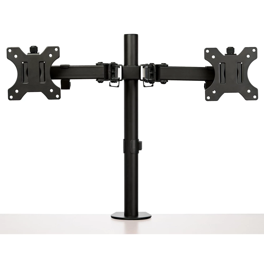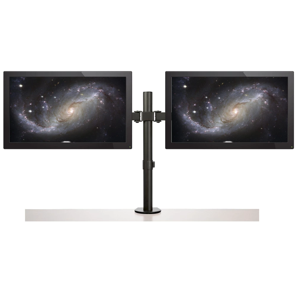 Desk-mountable, tiltable, rotatable monitor stand for 2 monitors up to 32" display size.
