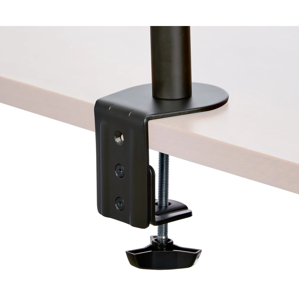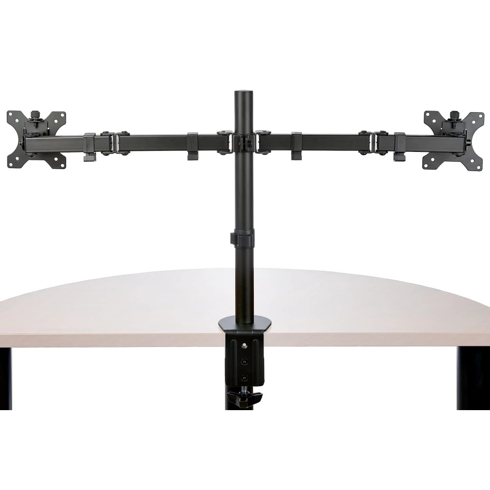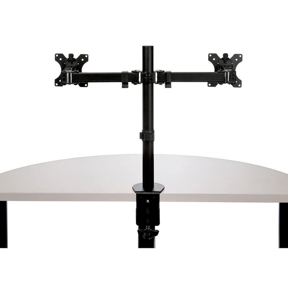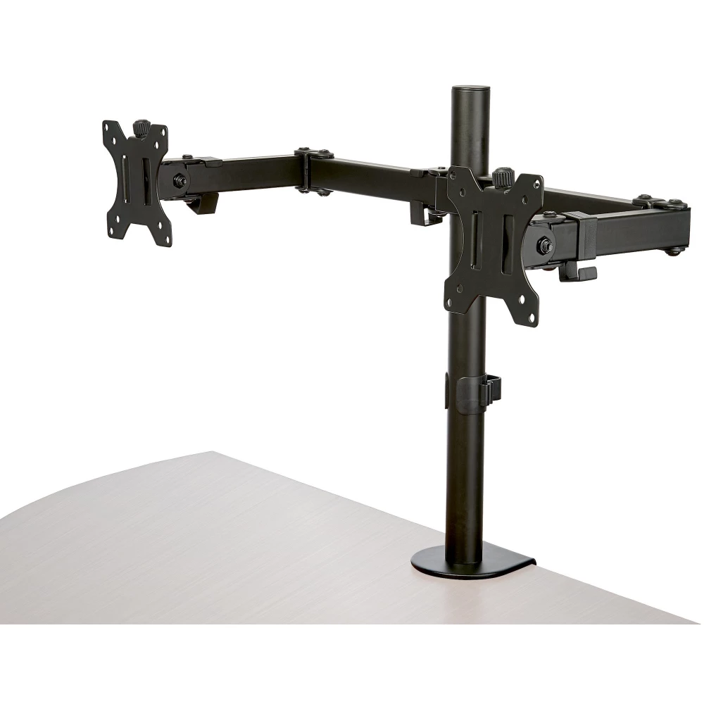Desk-mountable, tiltable, rotatable monitor stand for 2 monitors up to 32" display size.
