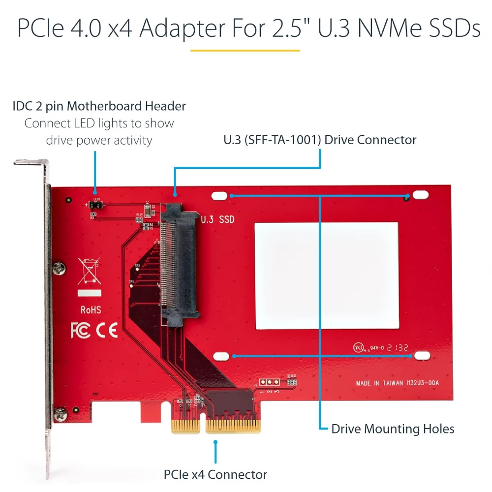 STARTECH PCIe 4.0 x4 Adapter For 2.5" U.3 NVMe SSDs