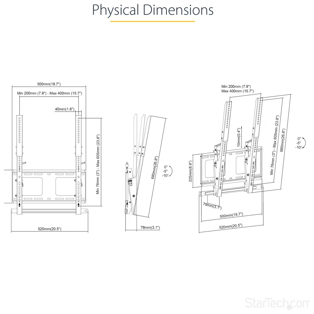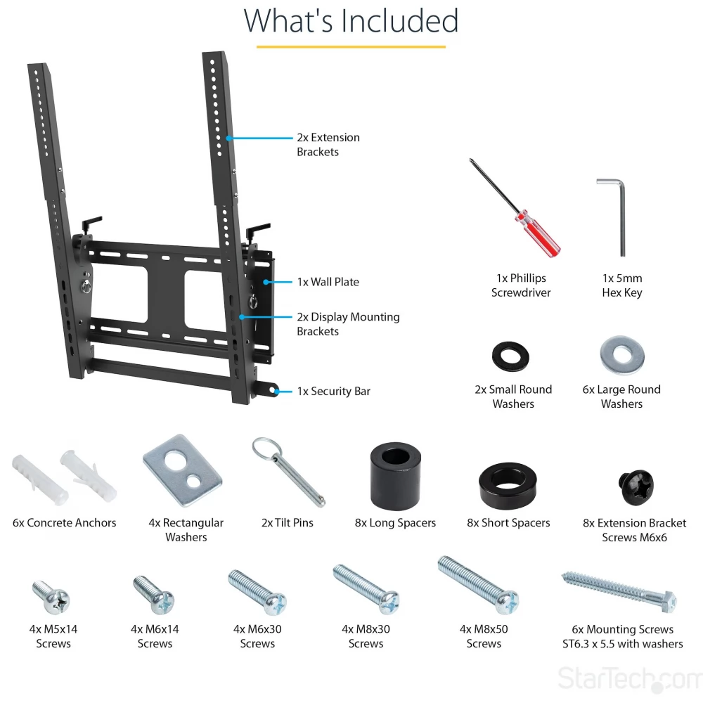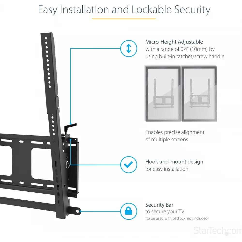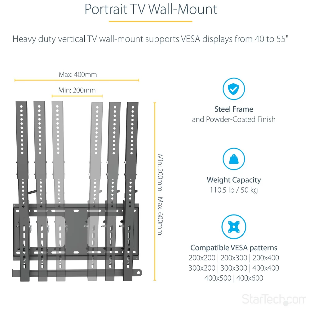 STARTECH Portrait/Vertical TV Wall Mount - Heavy Duty TV Wall Mount - 40-55" VESA Display (110lb/50Kg)