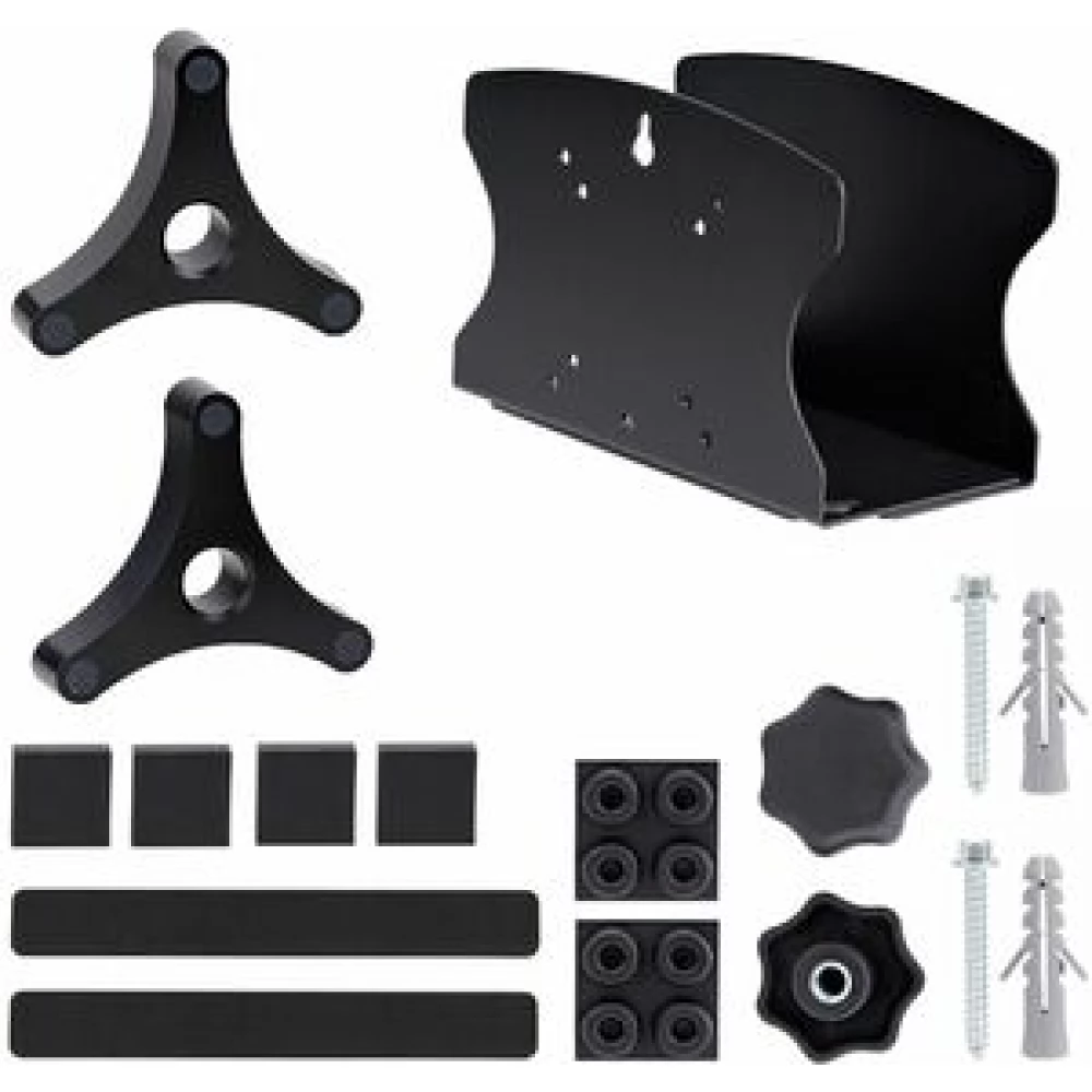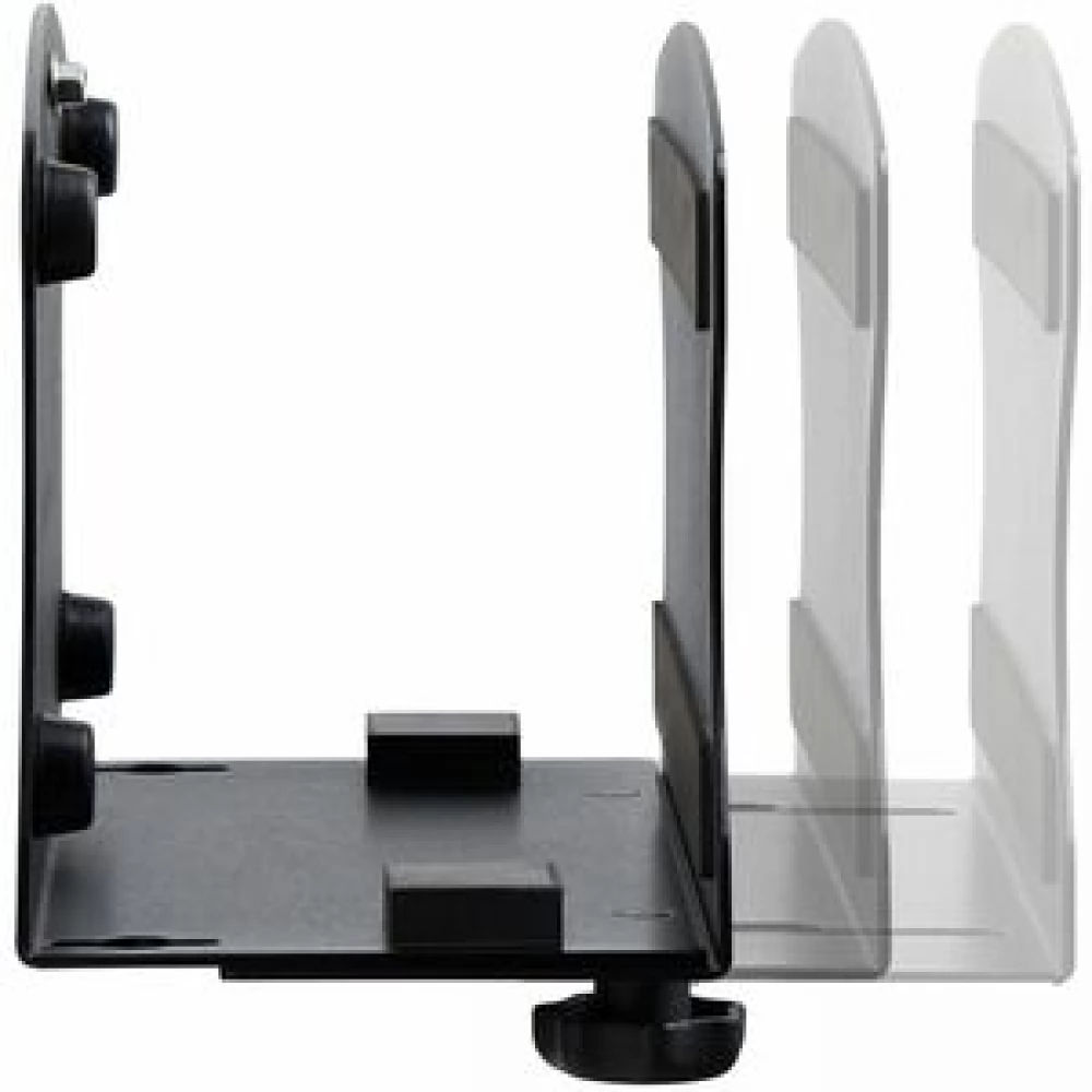 Quickly adjust the width of the PC wall bracket using the buttons. The included spacers protect the chassis and ensure a tight fit. Spacers allow for a variety of CPU sizes from 1.9 to 7.8 inches (50 to 200 mm) all the way up to Small Form Factor (SFF) computers.